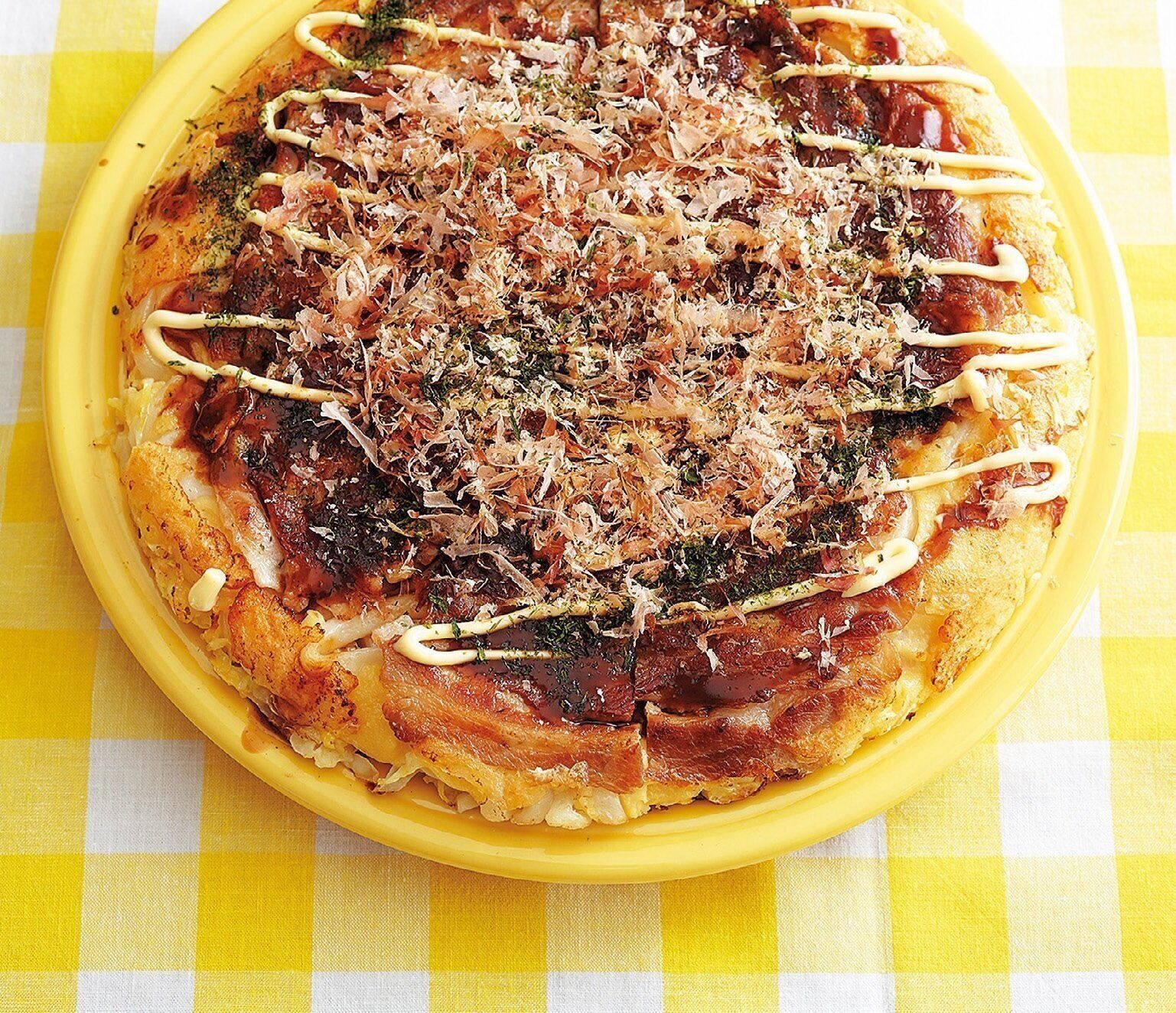 フライパン1つで麺も具もゆでて時短になるカルボナーラと、山盛りのせん切りキャベツが豪快な広島風お好み焼きのレシピをご紹介します。20分以下でささっと調理できてランチにおすすめ。麺をうどんや、焼きそばに変えても◎。