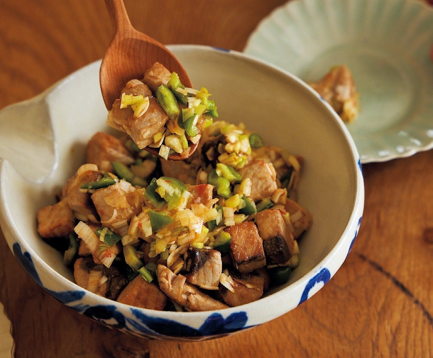 魚料理をお手軽に食卓に!戻りがつおは脂がのっていて、加熱してもパサつきにくいのが◎。だし汁いらずのかつおめしと、ナンプラーと豆板醤をきかせた、やきがつおとピーマンのあえもののレシピをご紹介します。