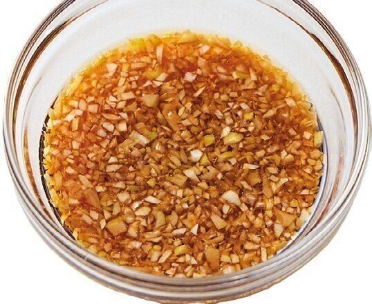大きなボウルやバットに(1)、(2)を入れ、香味だれをかけてからめる。