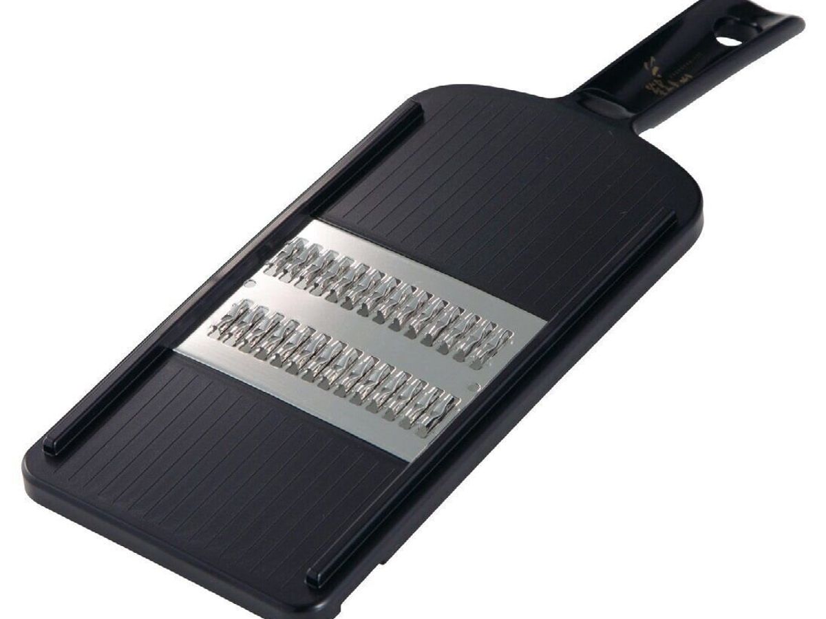 二枚刃だから、一枚刃に比べて倍の量がいっぺんに切れるのがラク!ふわっとした千切りができ、にんじん1本分が軽く食べ切れます。料理達人の『サンキュ!』読者・野口ゆかさんの撮影のときに教えてもらいました。