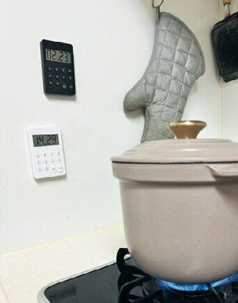 このタイマーは、3分50秒なら「0350」と押すだけなので設定が簡単。料理家・市瀬悦子さんが2個使いしているのをまねして、1つは鍋での炊飯用、もう1つは別料理用に。効率的に料理ができるようになりました。