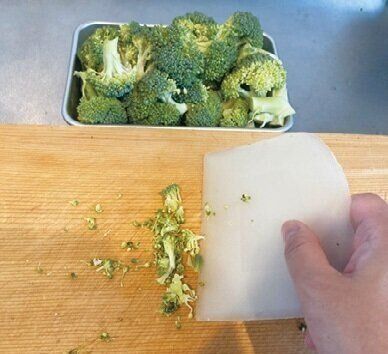 野菜の切りくずや水滴をこれで払えば、まな板を洗う、拭くという手間が省ける。