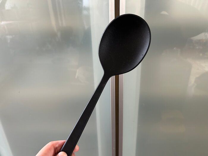 プロから料理達人までみ~んな使っている定番アイテム。汁ものもしっかりすくえるし、丈夫なシリコーン素材なので炒めものでもガンガン使えます。フライ返し、おたまをこれ1本で兼用できるので洗い物が減るのもいい。