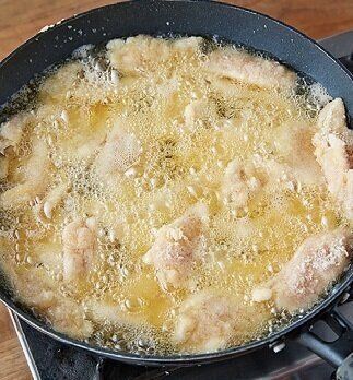 じゃがいもを揚げながら油の温度を上げたあと、鶏肉を一度に全て揚げるから時短でできる。