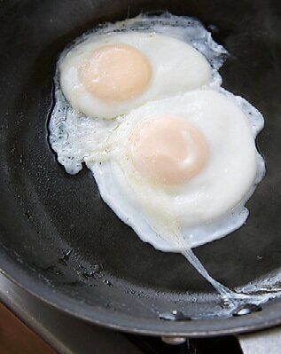 卵を割り入れたら水を加えて焼き色がつかないよう蒸し焼きに。5分余熱で火を通すと堅ゆで卵の固さに。