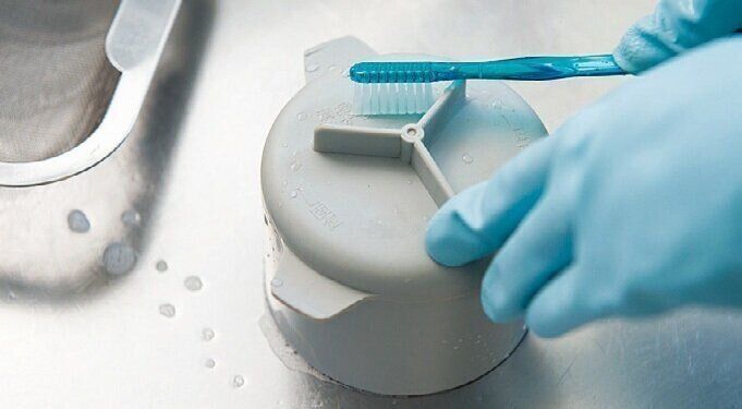 3 排水口とパーツをこすり洗いする