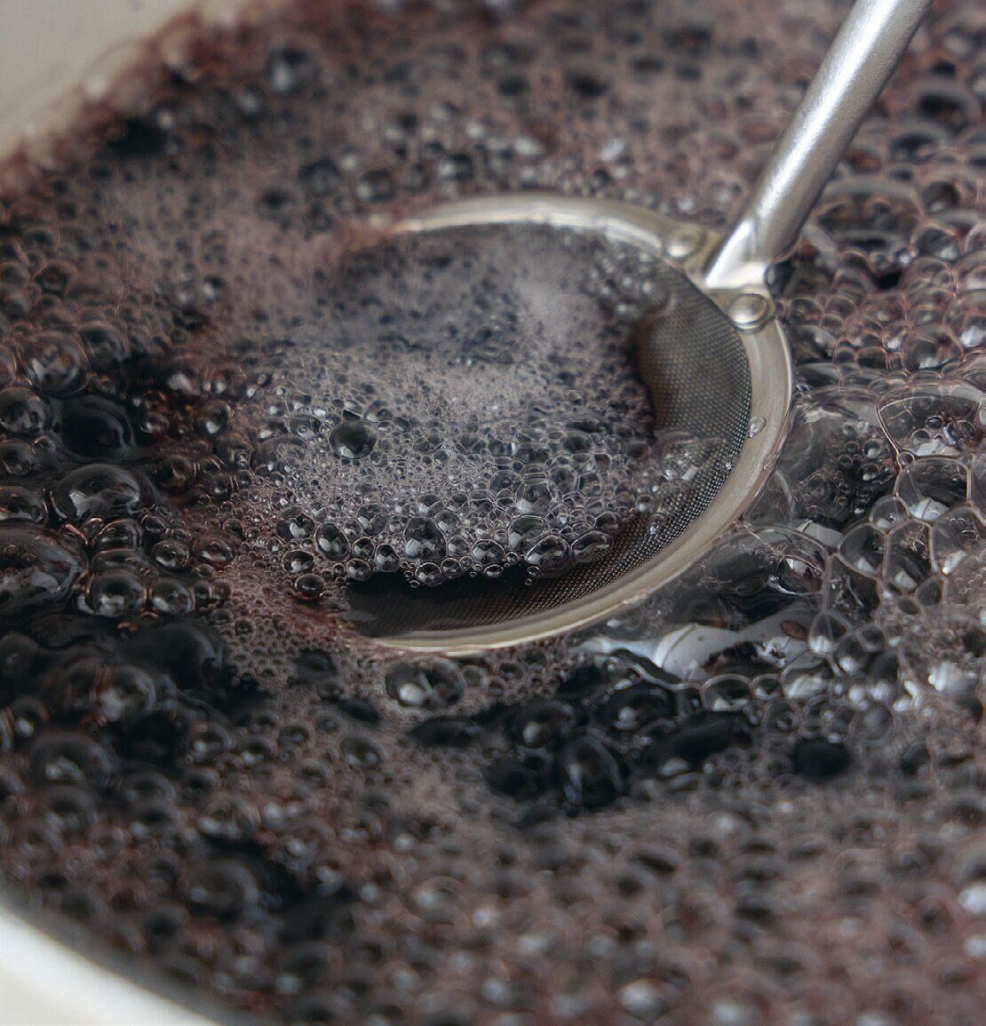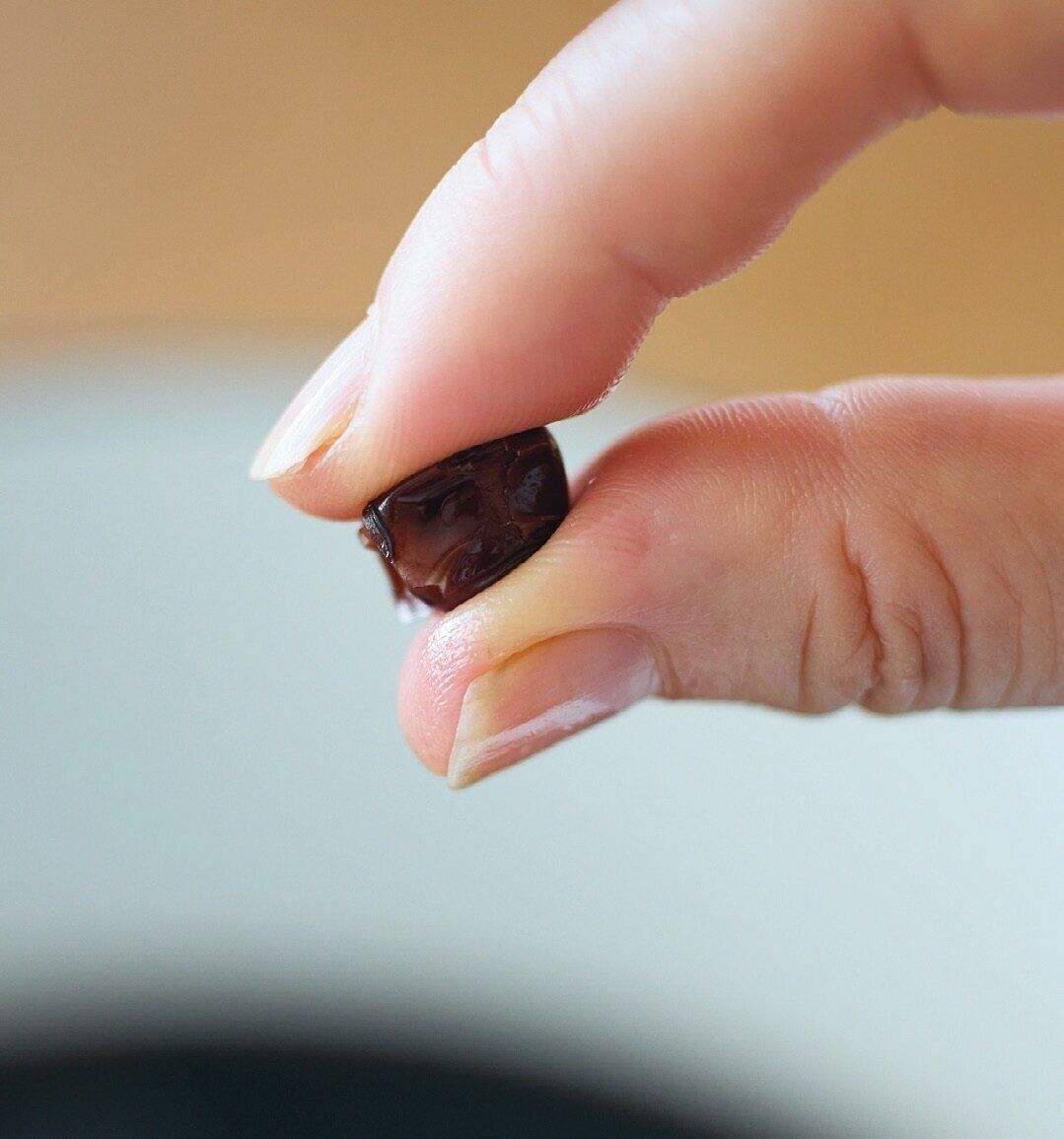 (3)黒豆を1粒取り出し、豆を縦にしてつまんでつぶし、簡単につぶれるくらい柔らかくなっていたら、煮え上がり。少し硬い場合は、30分ずつ長く煮て様子をみる。火を止め、そのまま粗熱を取る。