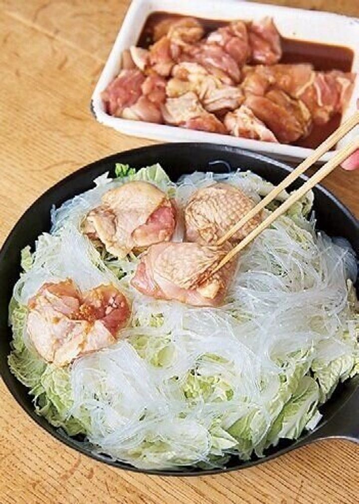 鶏肉と白菜と春雨の重ね蒸し