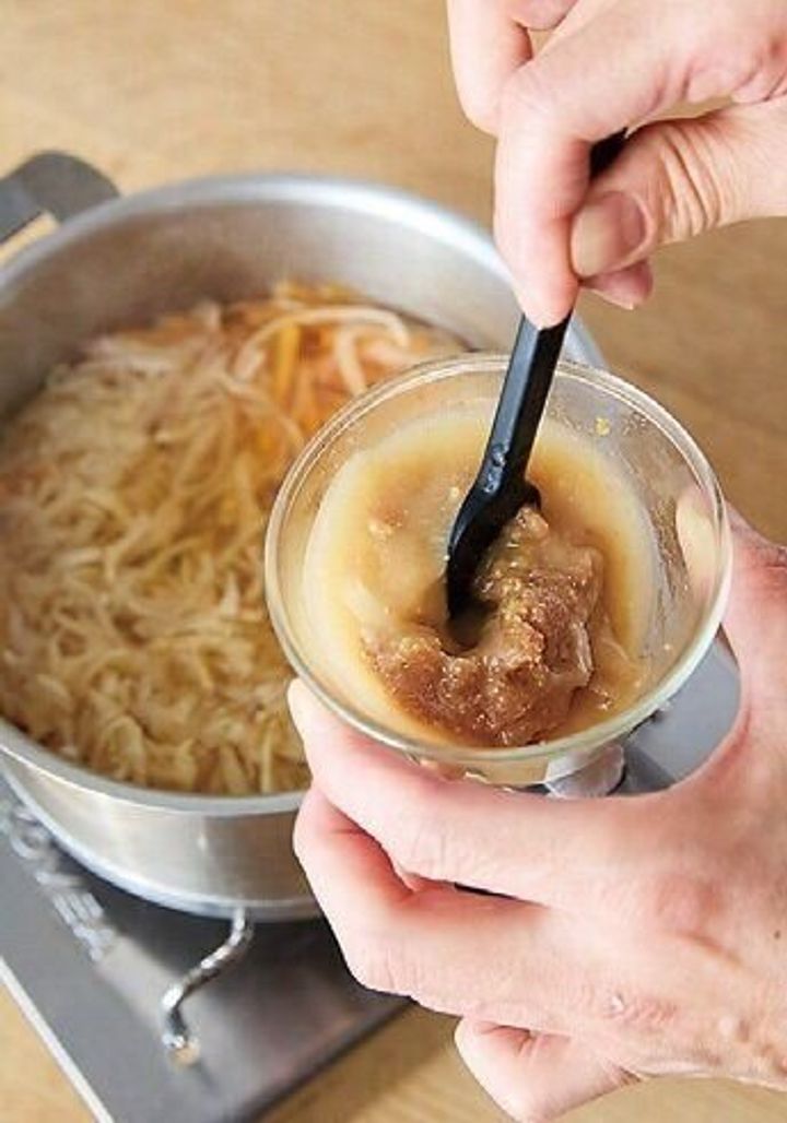 (1)の鍋を中火にかけ、沸騰したら弱めの中火にして5分煮て、みそを溶き入れる。
