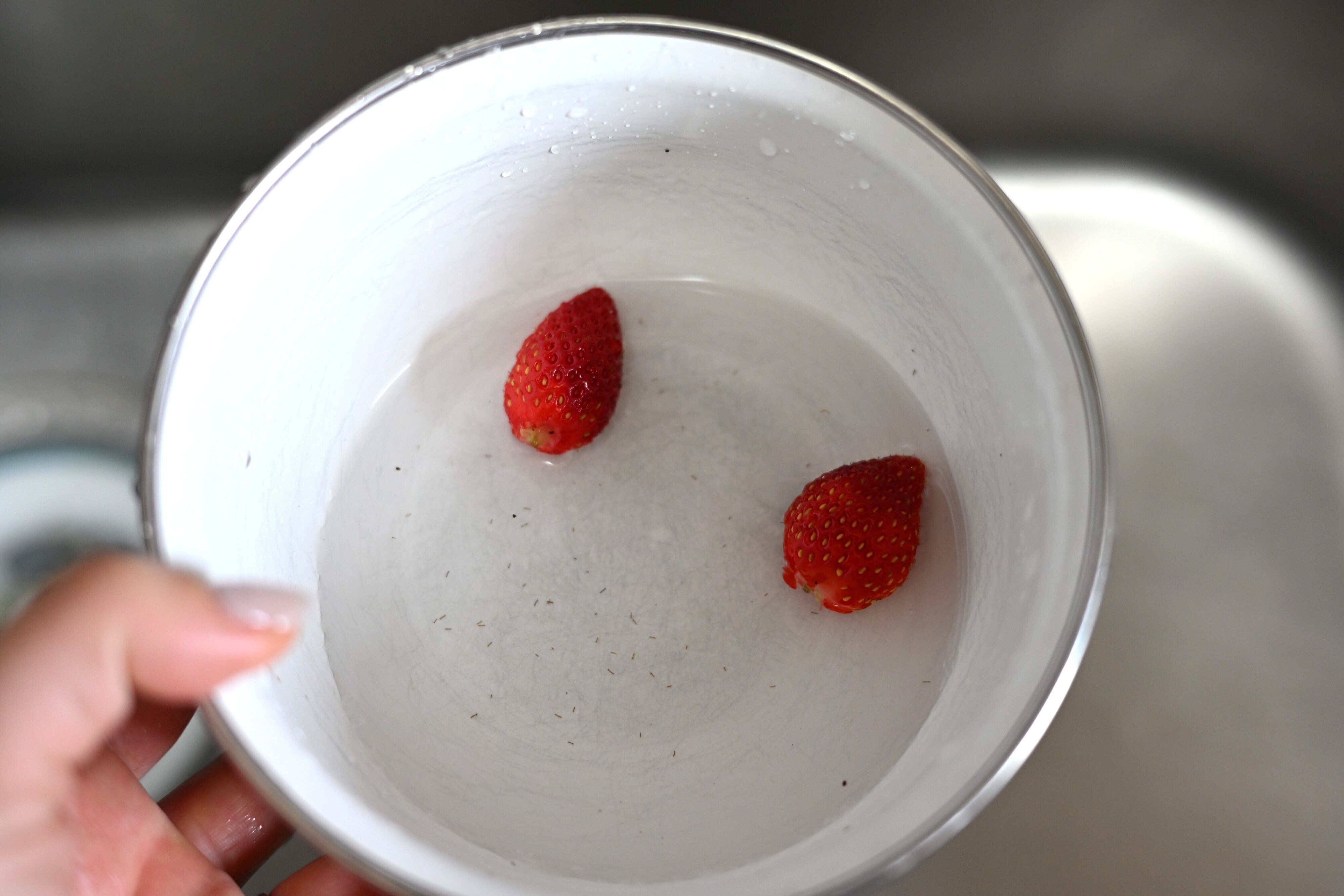 洗い終えた直後の見た目は、そこまで違いを感じませんでしたが、若干ヘタを取ったいちごのヘタを取った部分が水っぽいというか、ふやけた感じがあるようにも見えます。