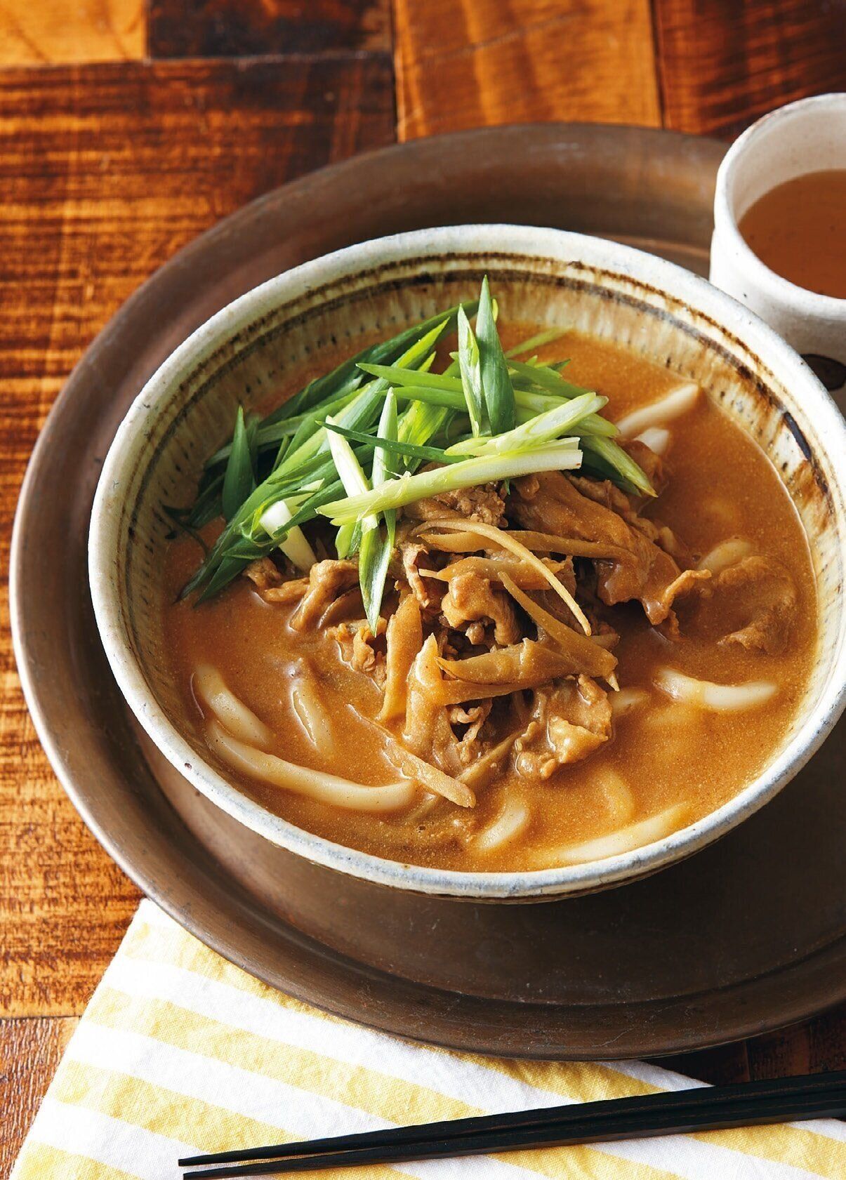 (3)汁の鍋に豆乳を加え、煮立つ直前で火を止める。(2)のうどんにかけ、万能ねぎをのせる。(ワタナベ)