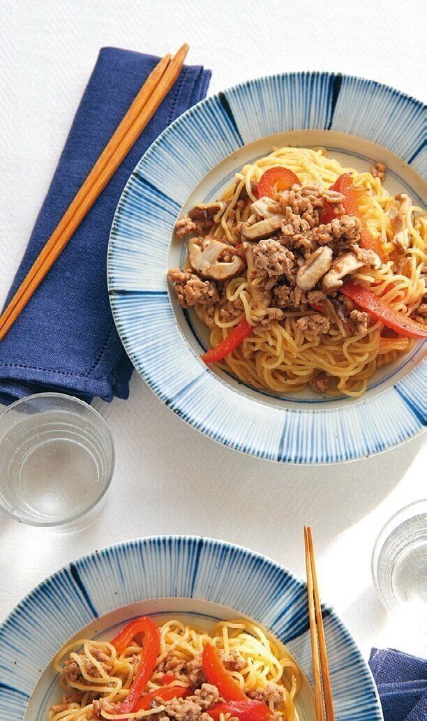 ひき肉とパプリカのしょうゆ焼きそば