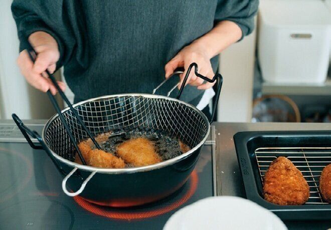 朝出勤前に冷蔵室へ移動し、ほどよく解凍された豚肉を揚げるだけでとんカツが完成。ころもをつけてあるので、面倒な揚げ物もさっと作れる!