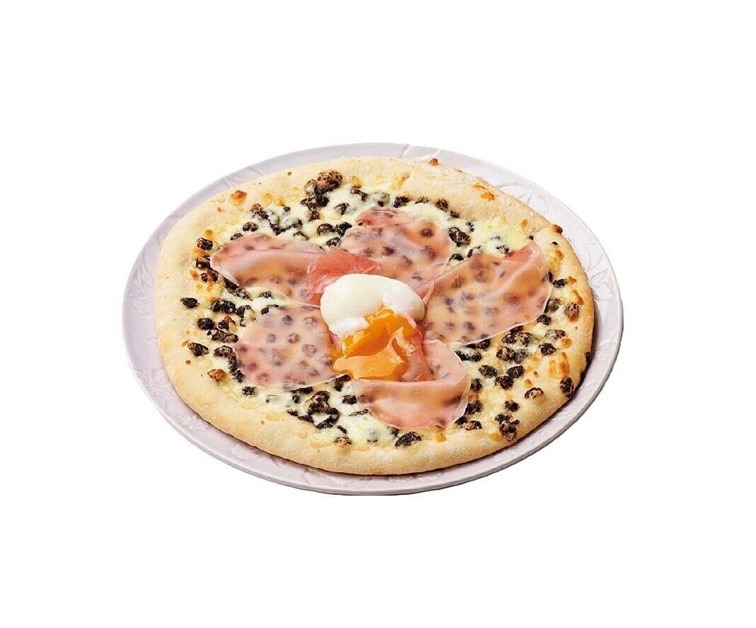 トリュフピザには生ハムや温玉をトッピングして豪華に