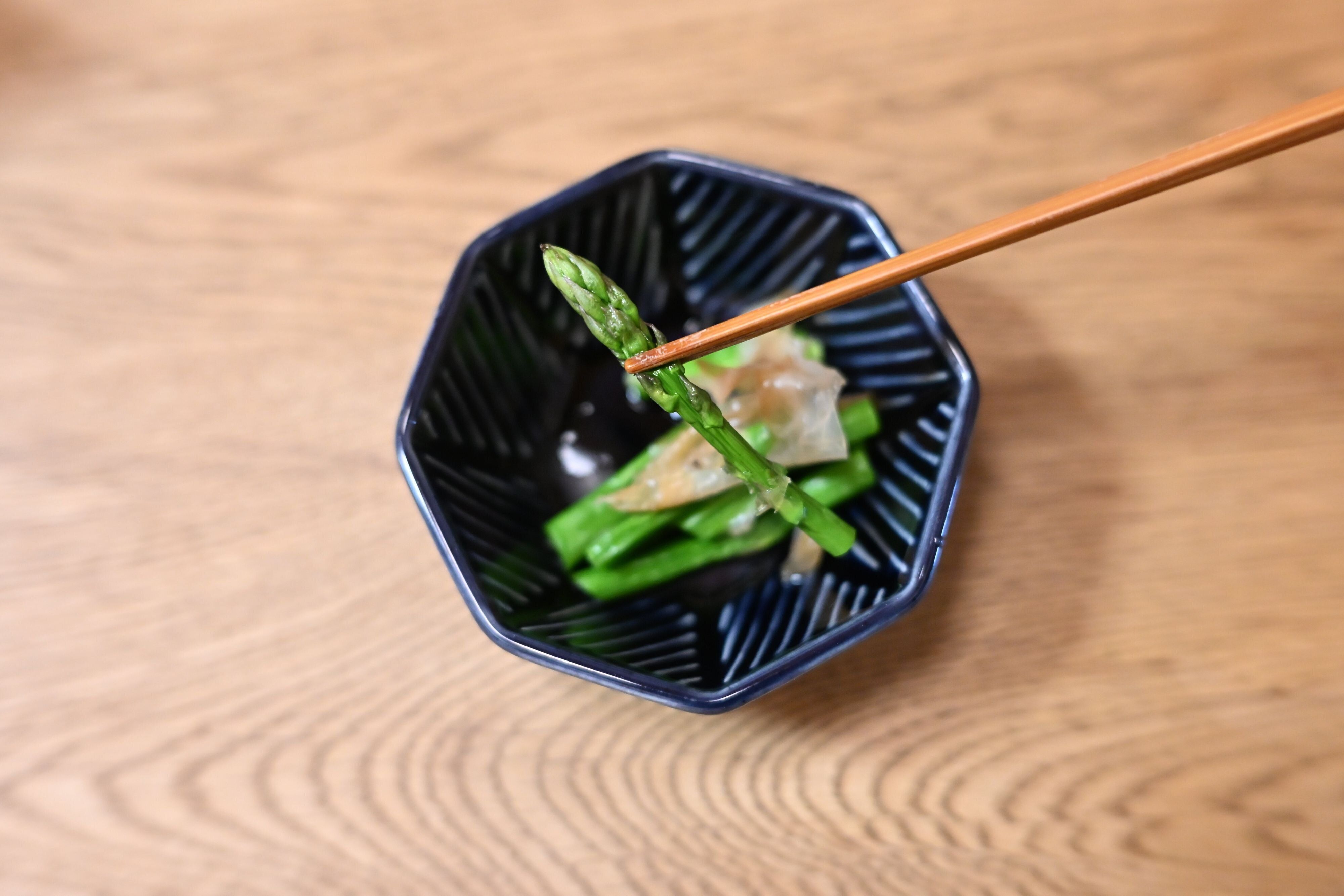 近所のスーパーで購入したアスパラガスを使い、白だしを使ったシンプルなお浸しを作ってみました。