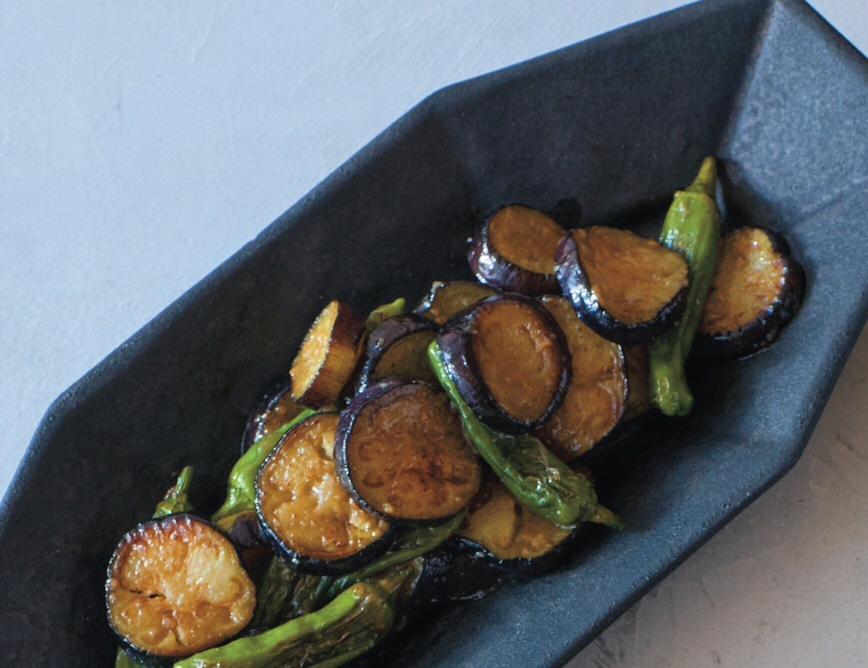 フライパンになす、しし唐辛子を入れ、油を回し入れて全体にからめる。ふたをして中火で約3分蒸し焼きにし、ふたを取って全体にしんなりとするまで炒める。[A]を加え、さっと炒め合わせる。