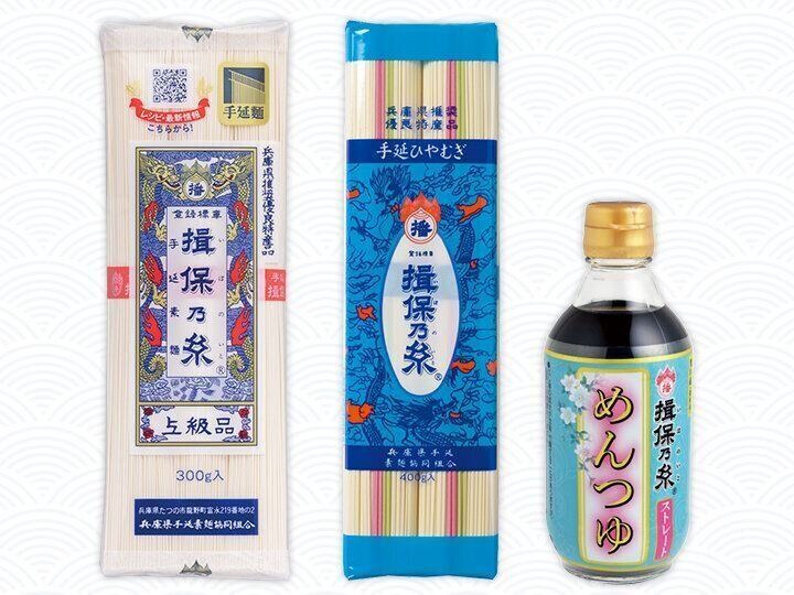 「揖保乃糸」は、細くて滑らかな食感が特徴。上品な味わいがあり、どんな料理にも合うため、食卓を豊かに彩ります