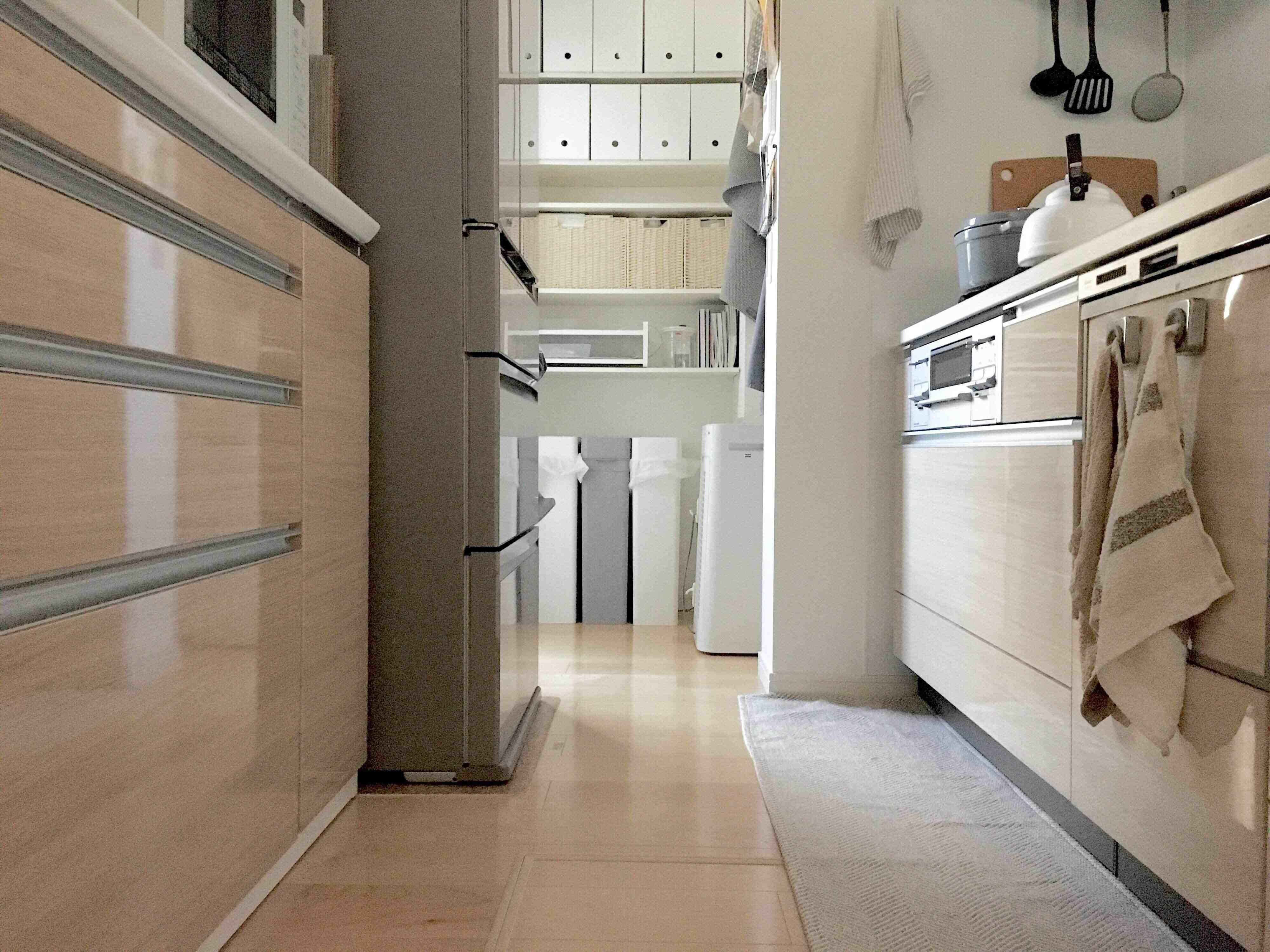 今は「上記画像のカゴの下に入る分だけ」と収納量を決めて増えすぎないよう注意しています。マイバッグを持つことが増えたので、以前より紙袋をもらう機会も減った気がします。