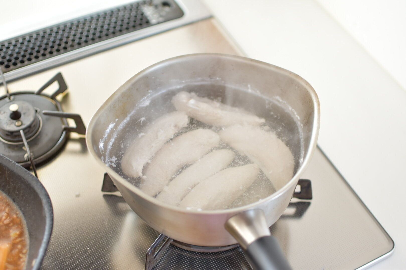 電子レンジでも加熱は可能ですが、加熱ムラも出やすく破裂して電子レンジ内が汚れてしまうこともありますので、お鍋でゆでる方法がおすすめです。