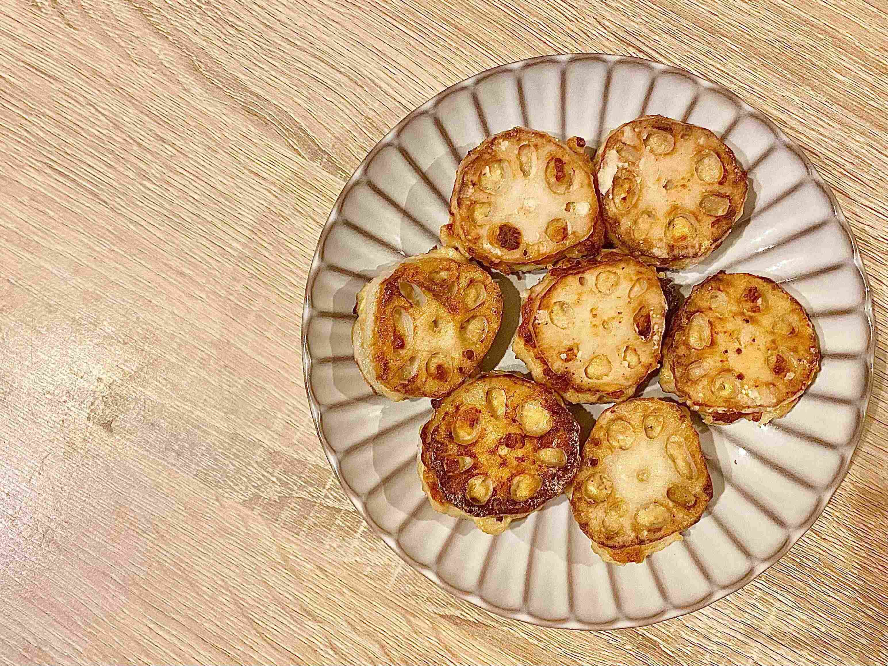 1 れんこんは5mm程度の輪切りにカット。片栗粉(分量外)をまぶしておく。