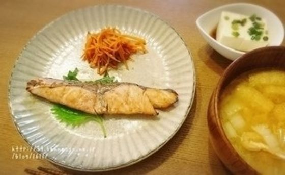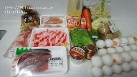 中野さんのおうちでは土日に好きな物を食べることが多いそうで、週の始めの月曜日はやさしい味の和食で胃をリセットします。この週のまとめ買いは晩ご飯に使用したブリやお肉、卵、野菜、サラダ油、お酒なども購入して7307円。週初めはストックものではなく新鮮な肉や魚をそのまま使うことが多いよう。