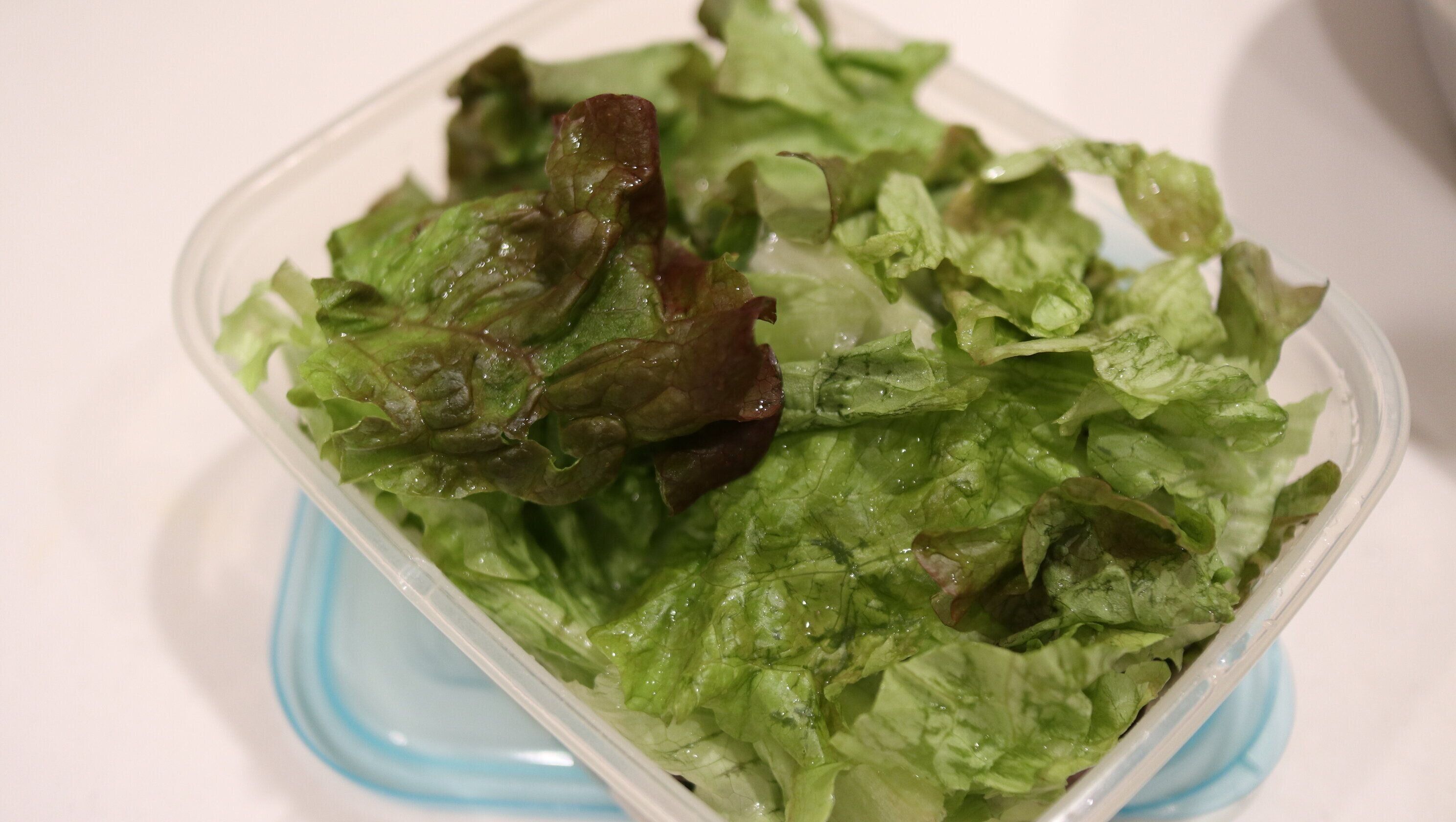レタスや葉物野菜。毎朝食べるサラダ用に、洗ってちぎって保存容器に入れています。