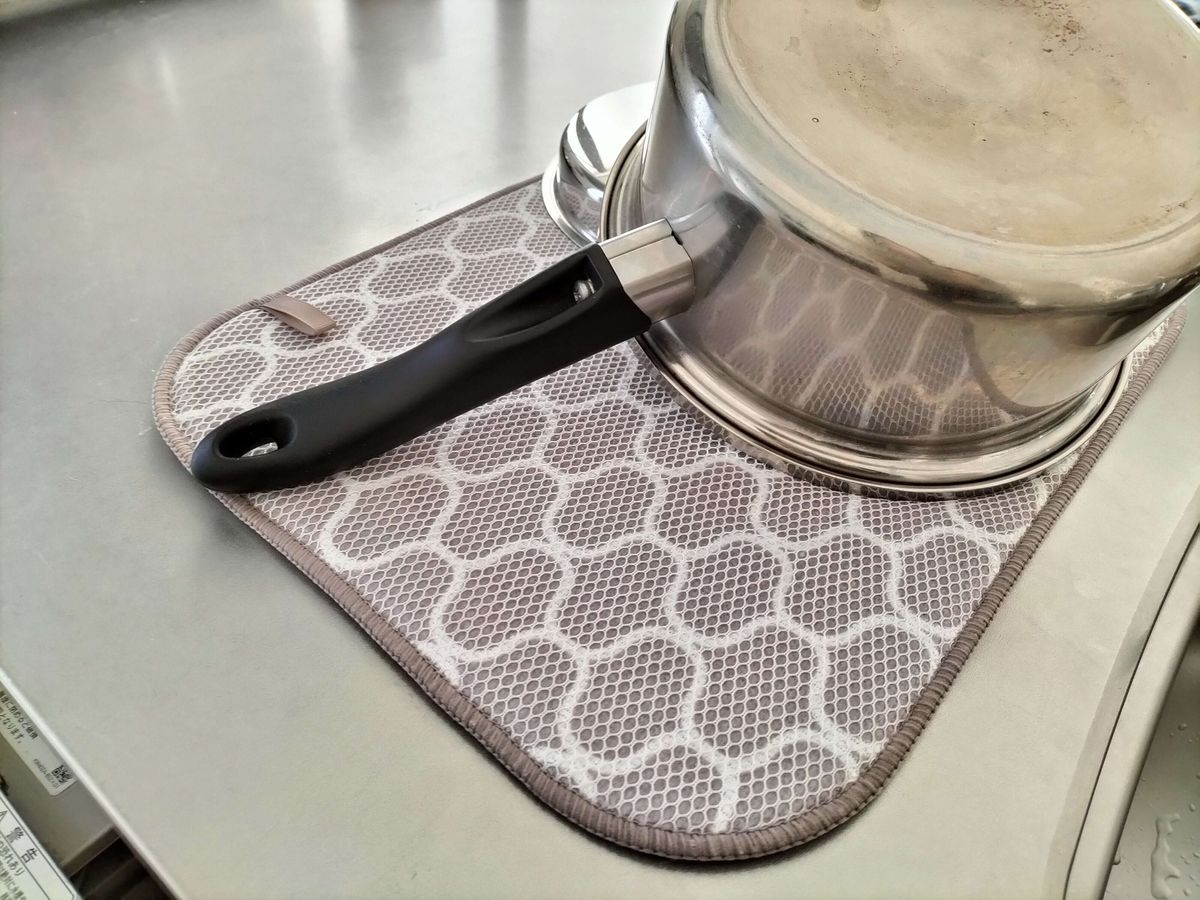 以前は洗い終わった後、手作業で拭き上げていました。この家事をするときは不機嫌なことが多かったのですが、今は吸水マットの上に並べ、自然乾燥させています。
