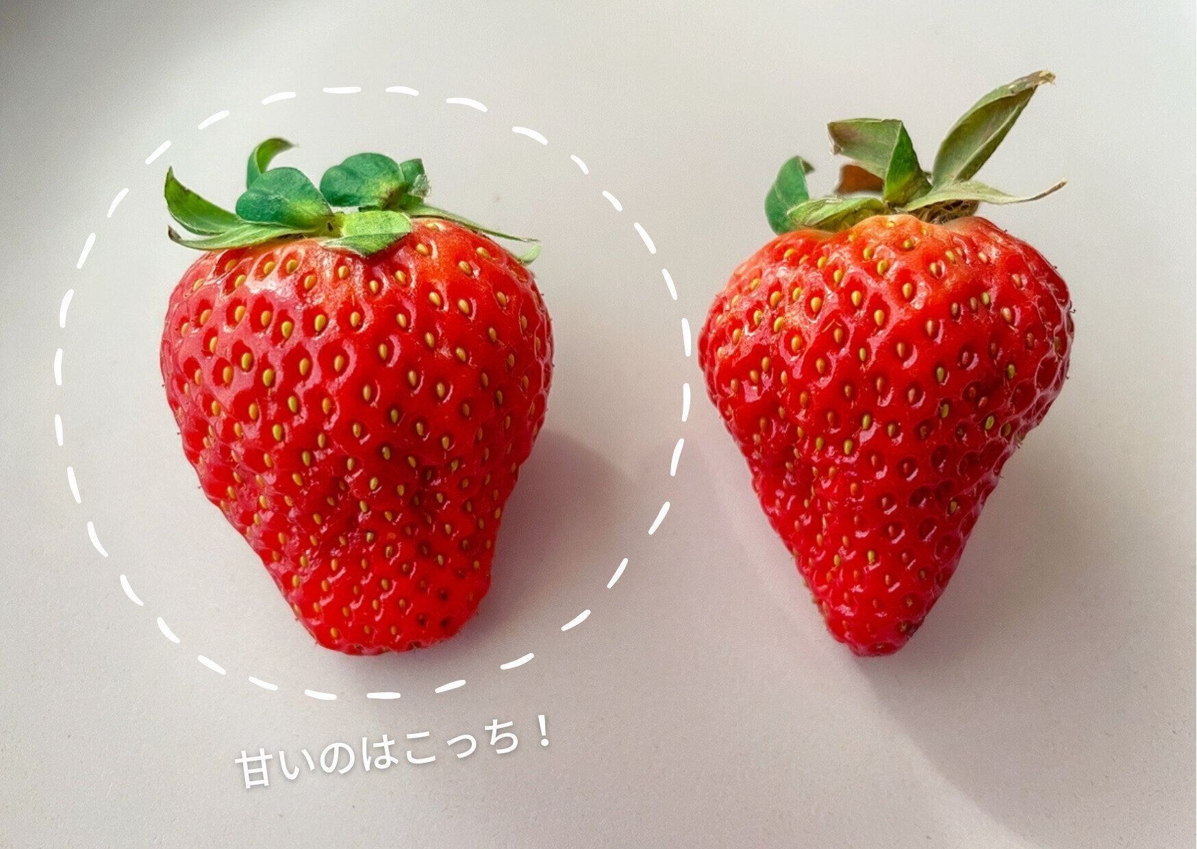 いちごを形で比較したときに、先端が細く円錐形になっているものと、少し平べったいものとではどちらが甘いでしょうか?