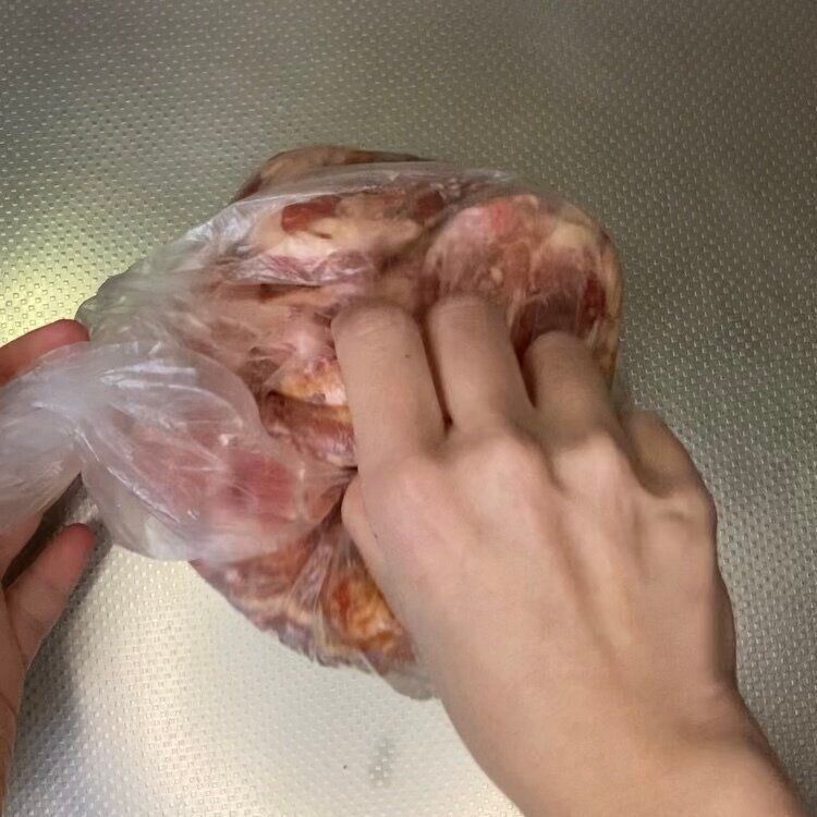 ポリ袋に豚肉・しょうが・しょうゆを入れてもみ、