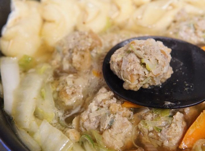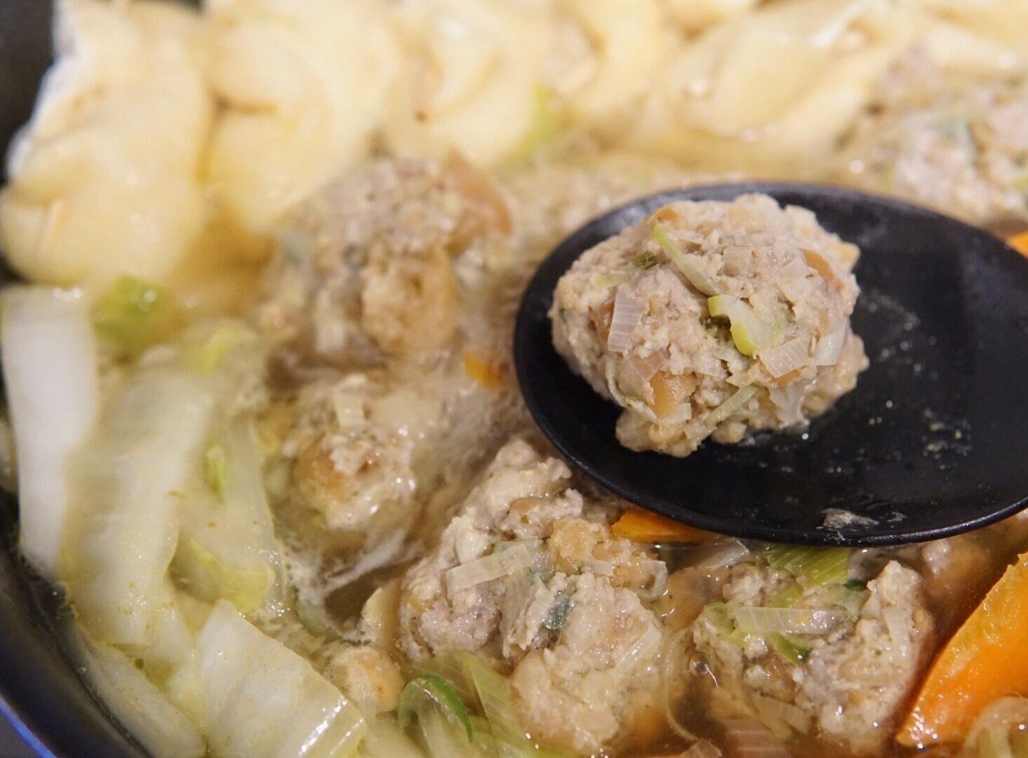 こちらが絶品で、早速家でも実践したところ家族にも大好評でした。カンパンだと言われなければわからず、カンパンだと言われても信じられないくらい味も食感も肉と一体化。それでいて鍋のスープと肉汁をしっかりと吸っているのでジューシー。カンパンがつなぎのかわりになっているので、手荒なことをしなければくずれることもありません。