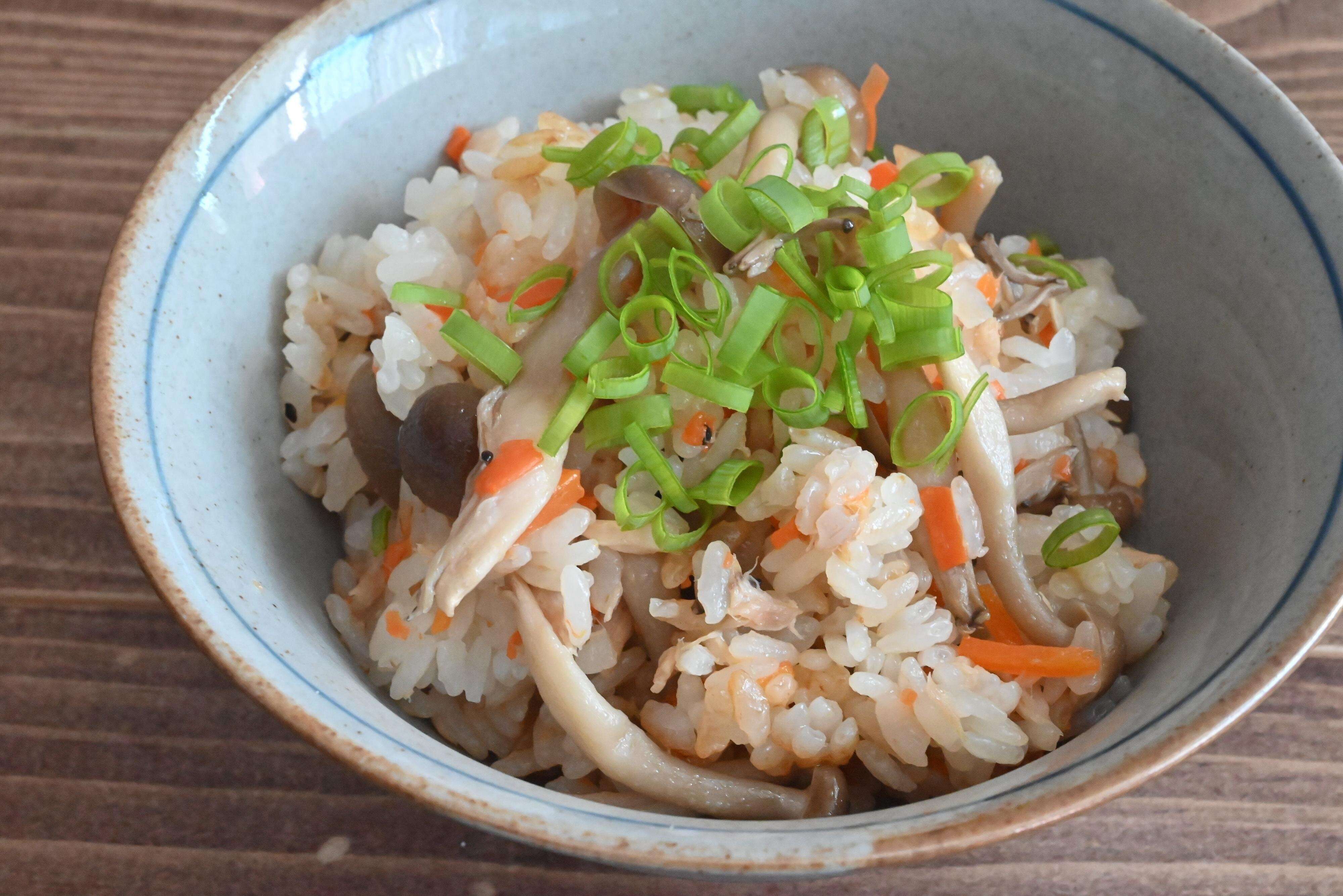 魚、きのこ、野菜をご飯と一緒に摂れる、栄養たっぷりの炊き込みごはんのレシピです。栄養バランスが気になるときにおすすめのひと品ですよ。