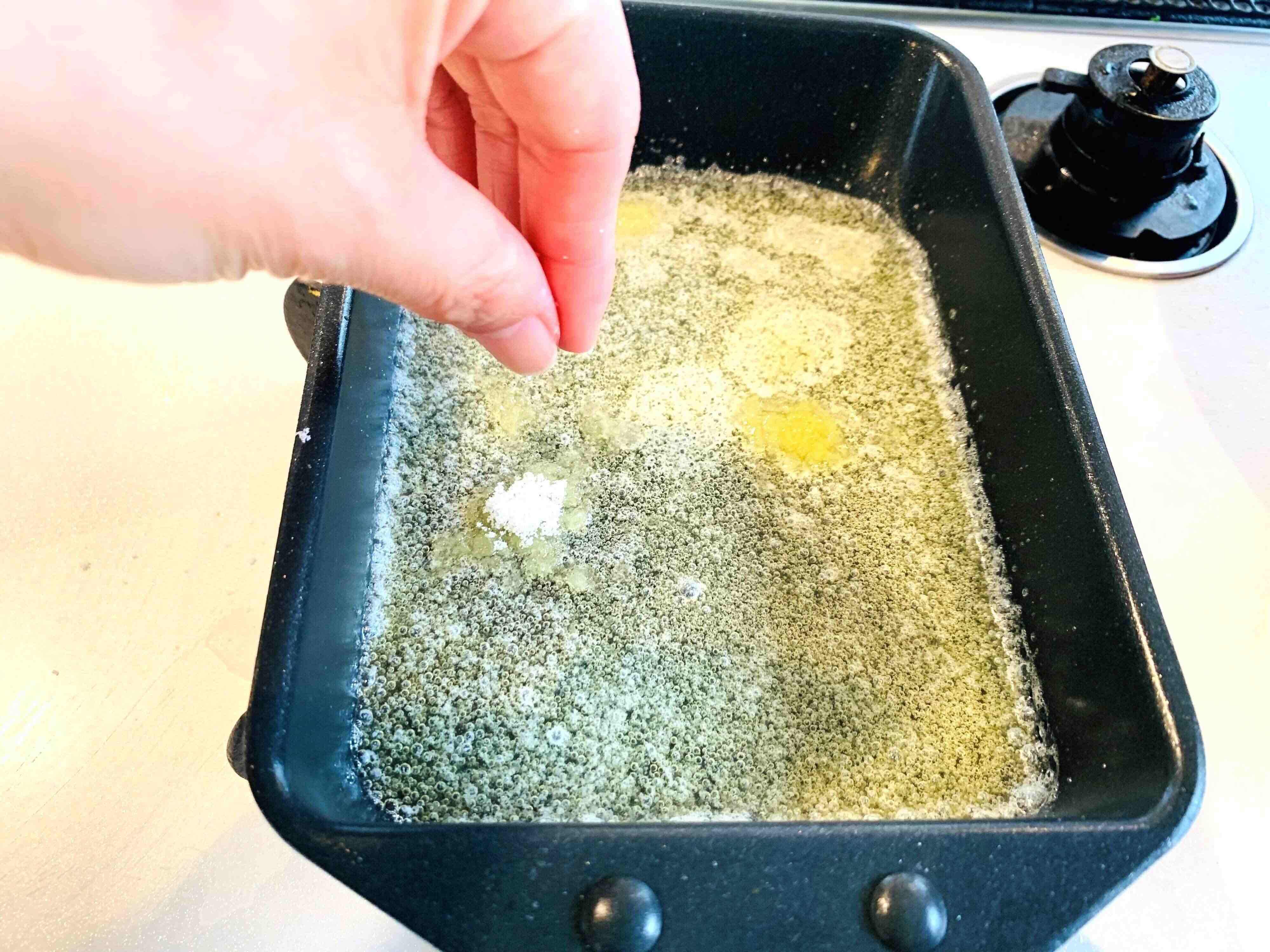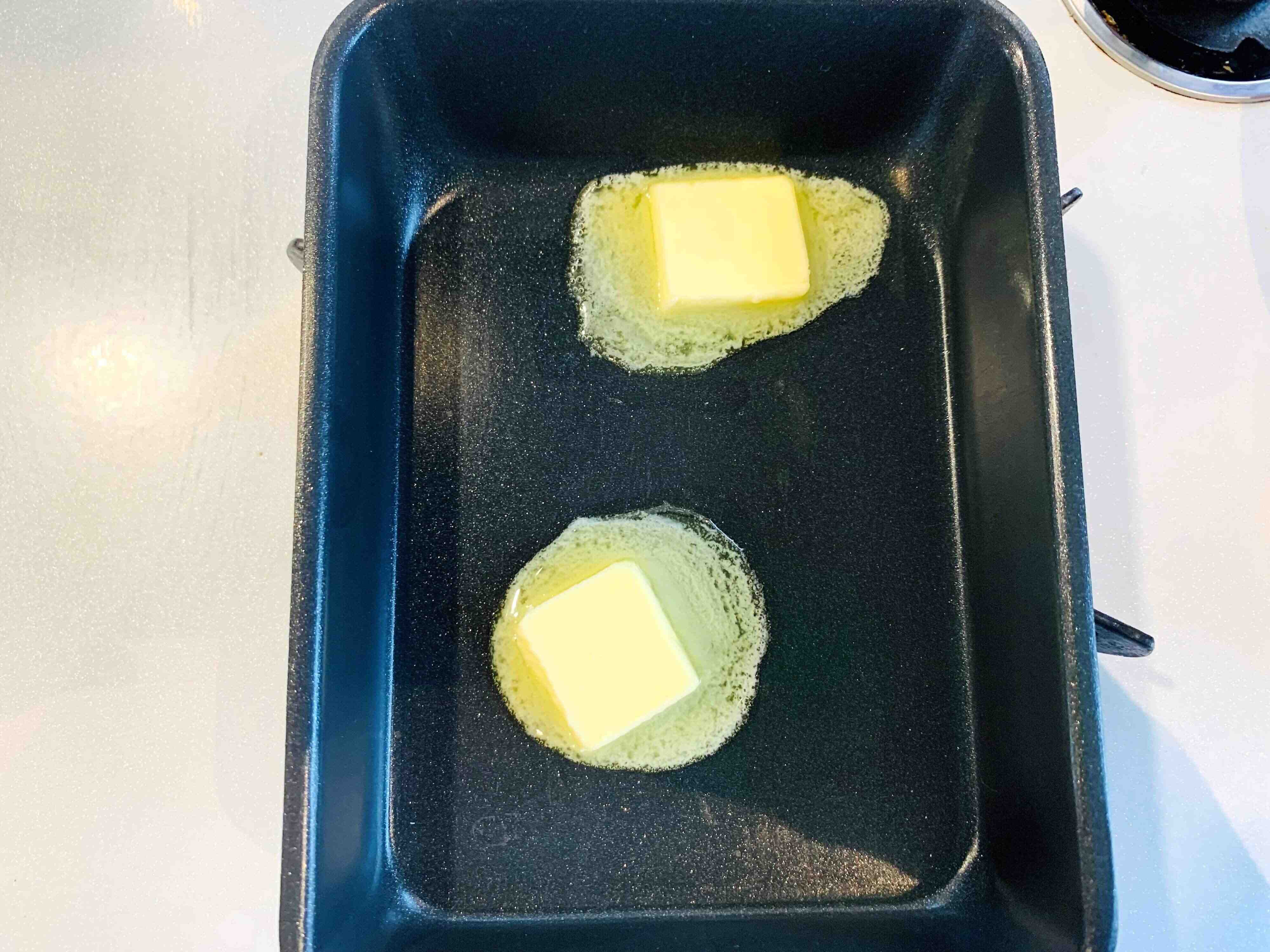 卵焼き用のフライパンに《キャラメル用》のバターを加えて、弱火で溶かします。