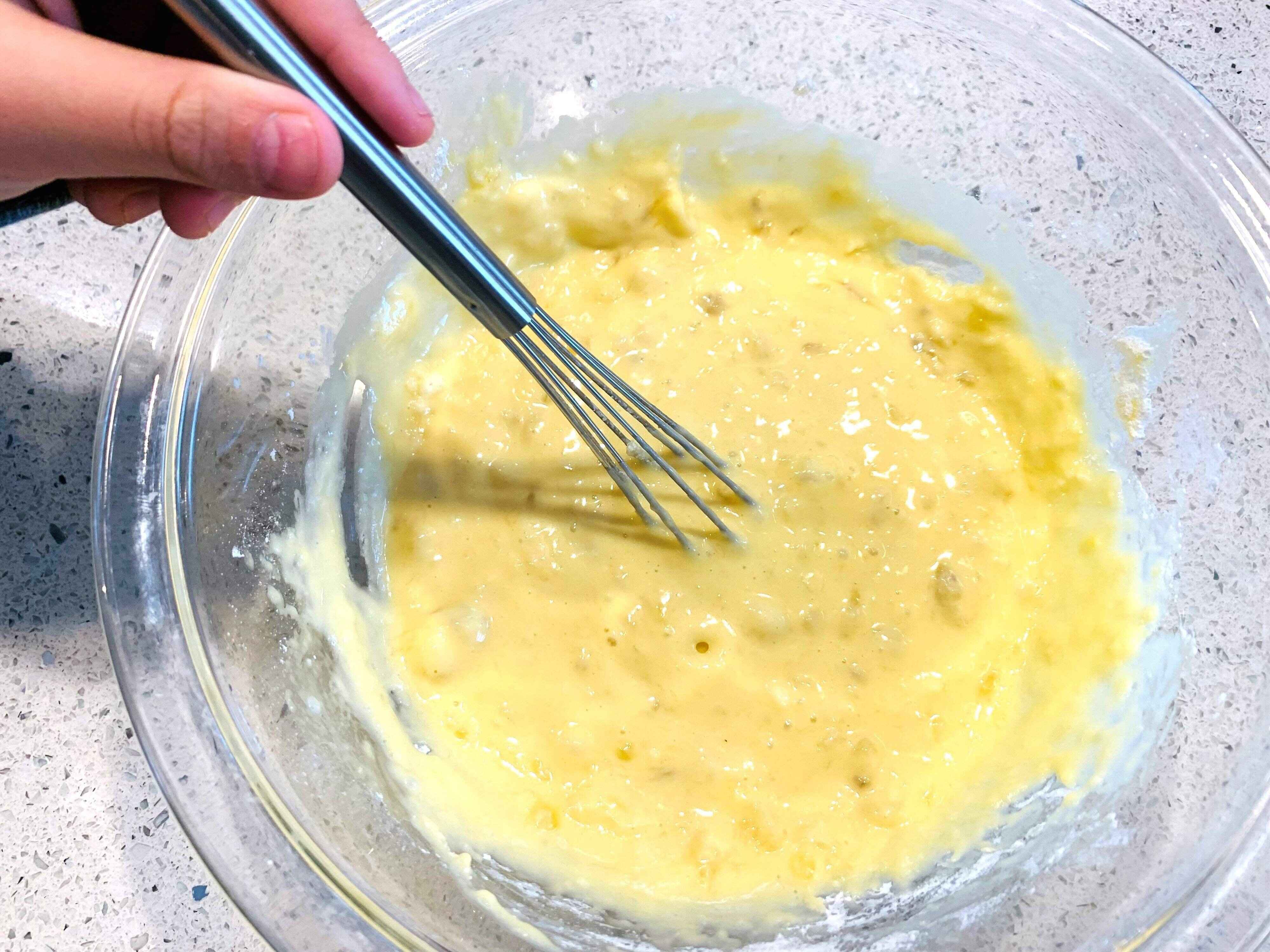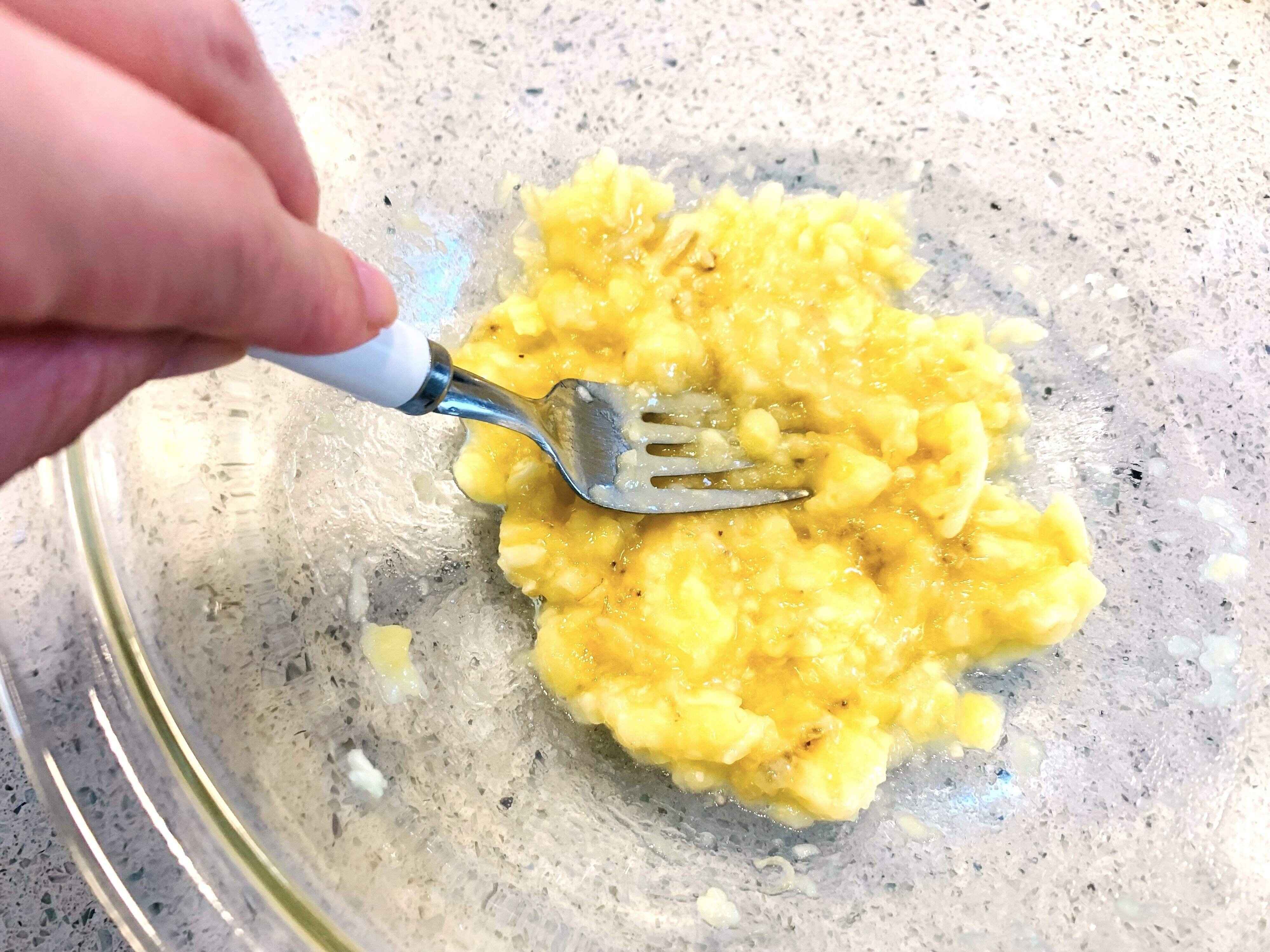 ボウルにバナナを入れて、フォークでしっかりつぶします。