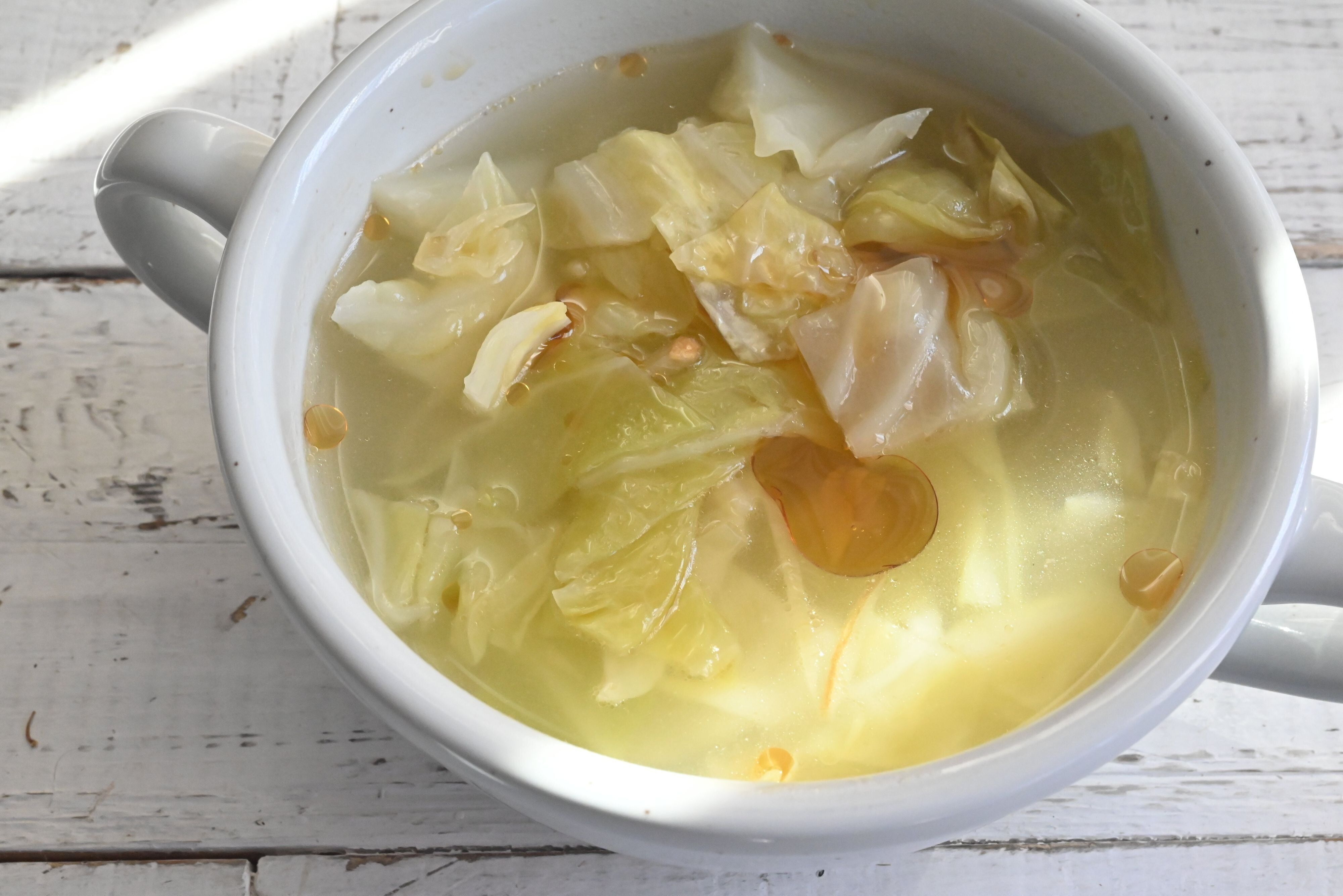食材はキャベツと生姜だけですが、おいしいスープができますよ。