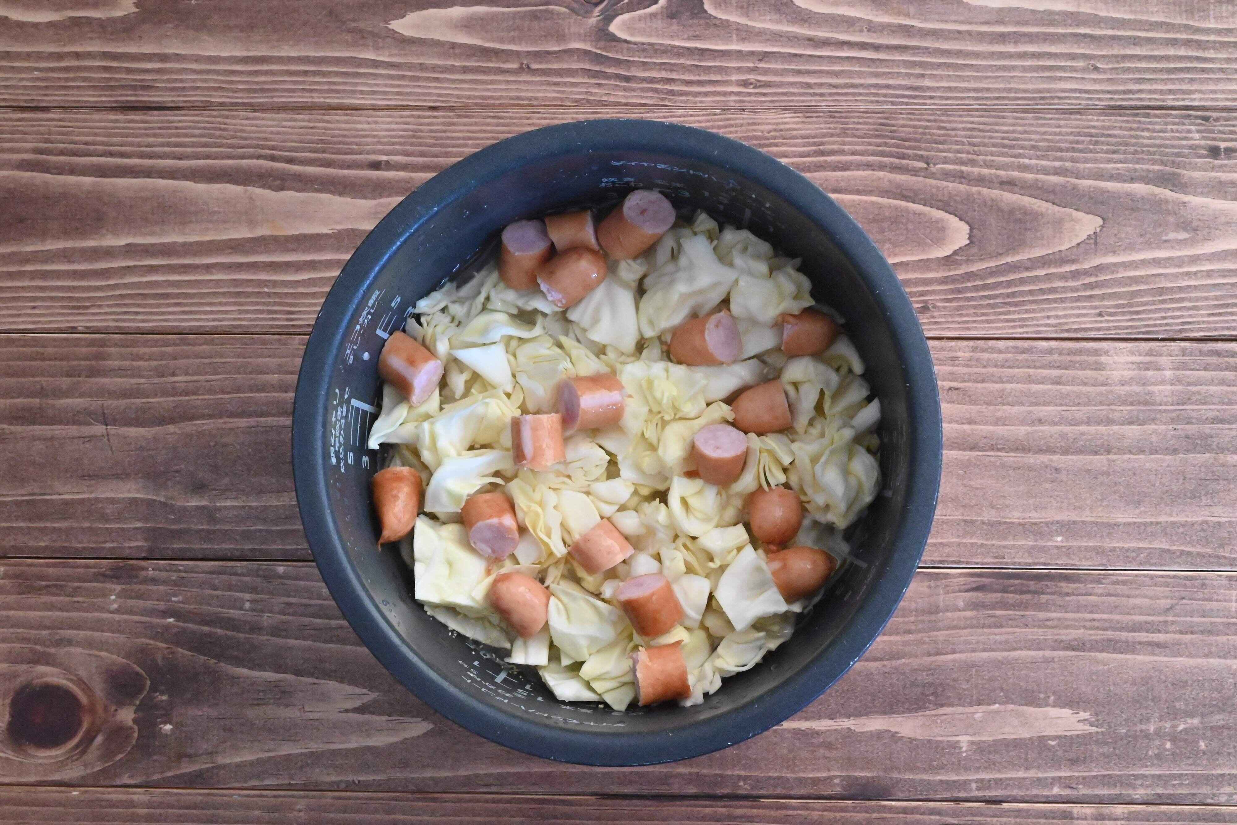 キャベツとソーセージの炊き込みごはんのレシピです。ソーセージとキャベツの旨味が合わさり、子どもがバクバク食べてくれるひと品に仕上がりますよ。