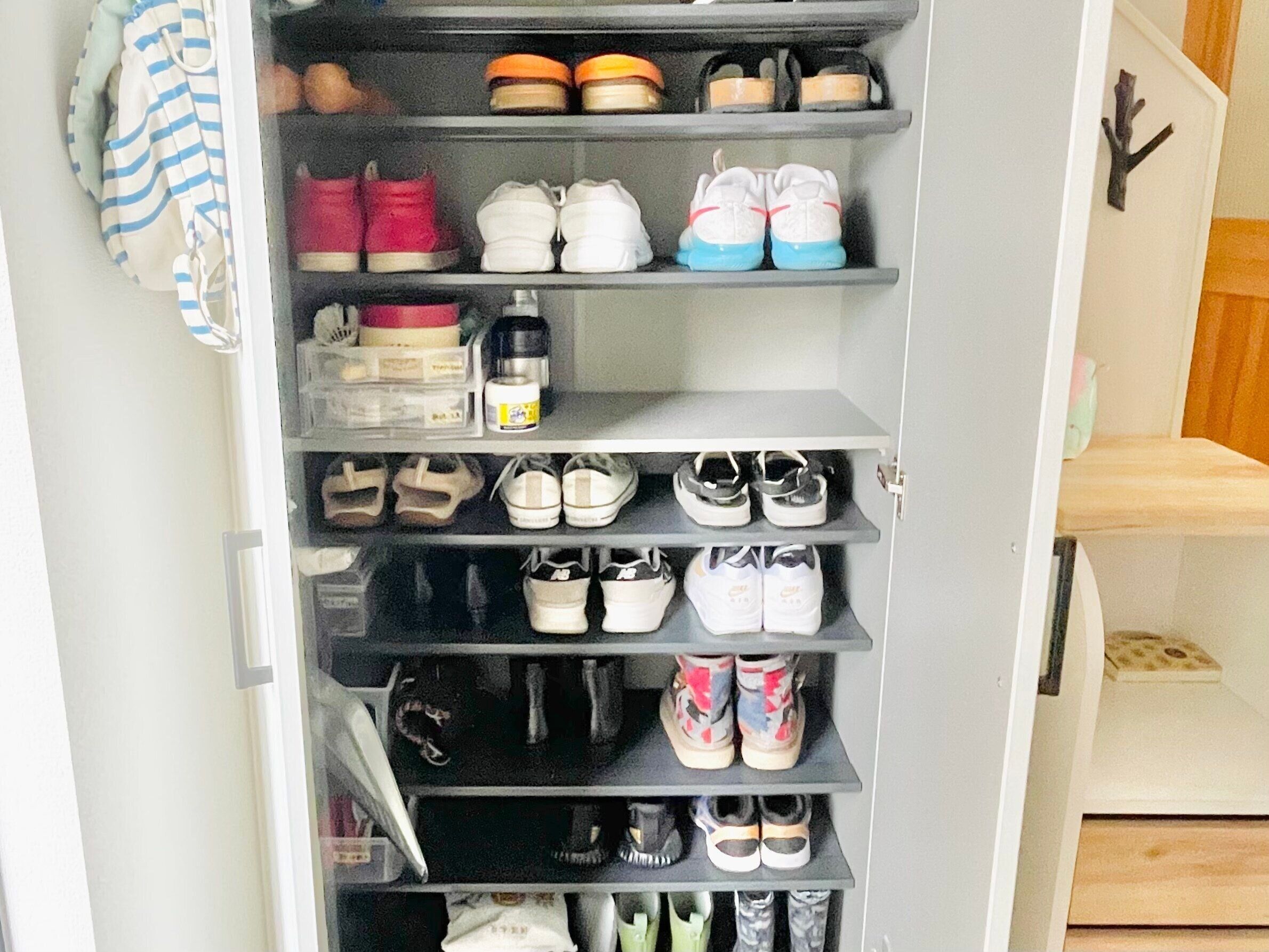 湿気が貯まりやすい下駄箱。梅雨入り前に靴を全部出して、空気を入れかえましょう。