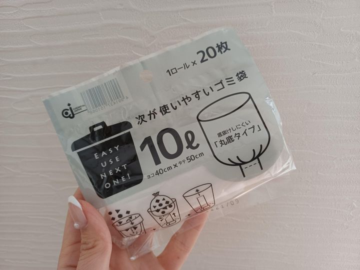 ゴミ出しの際に発生する、ゴミ箱に新しいゴミ袋をセットするという「名もなき家事」を減らすために、100均からでている【次が使いやすいゴミ袋】を使っています。