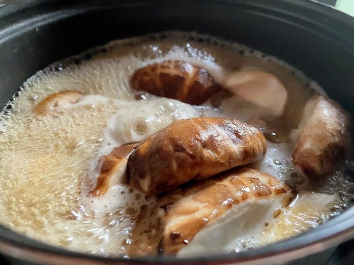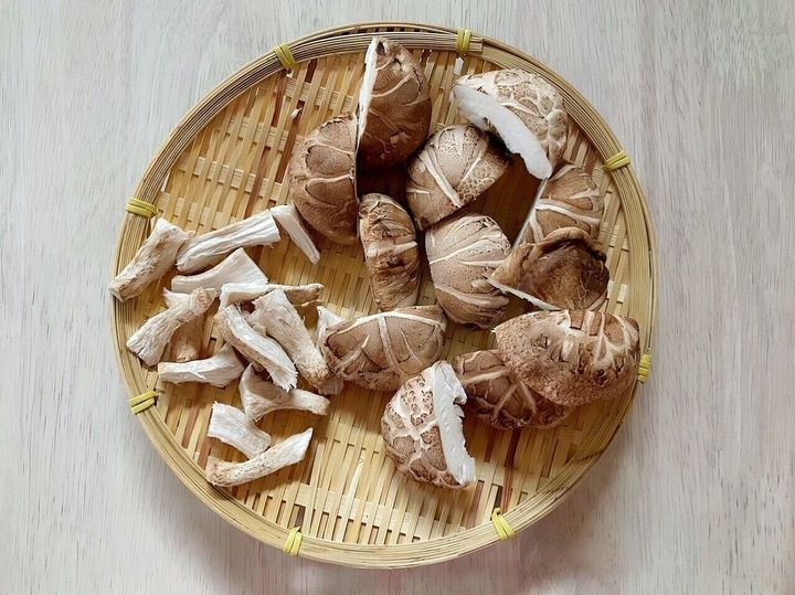 画像ではかさに割れのある生どんこしいたけを使用していますが、もちろん普通のしいたけでOK。十字に飾りぎりのひと手間を加えると、味の染み込みがよくなりさらにおいしく召し上がれるでしょう。