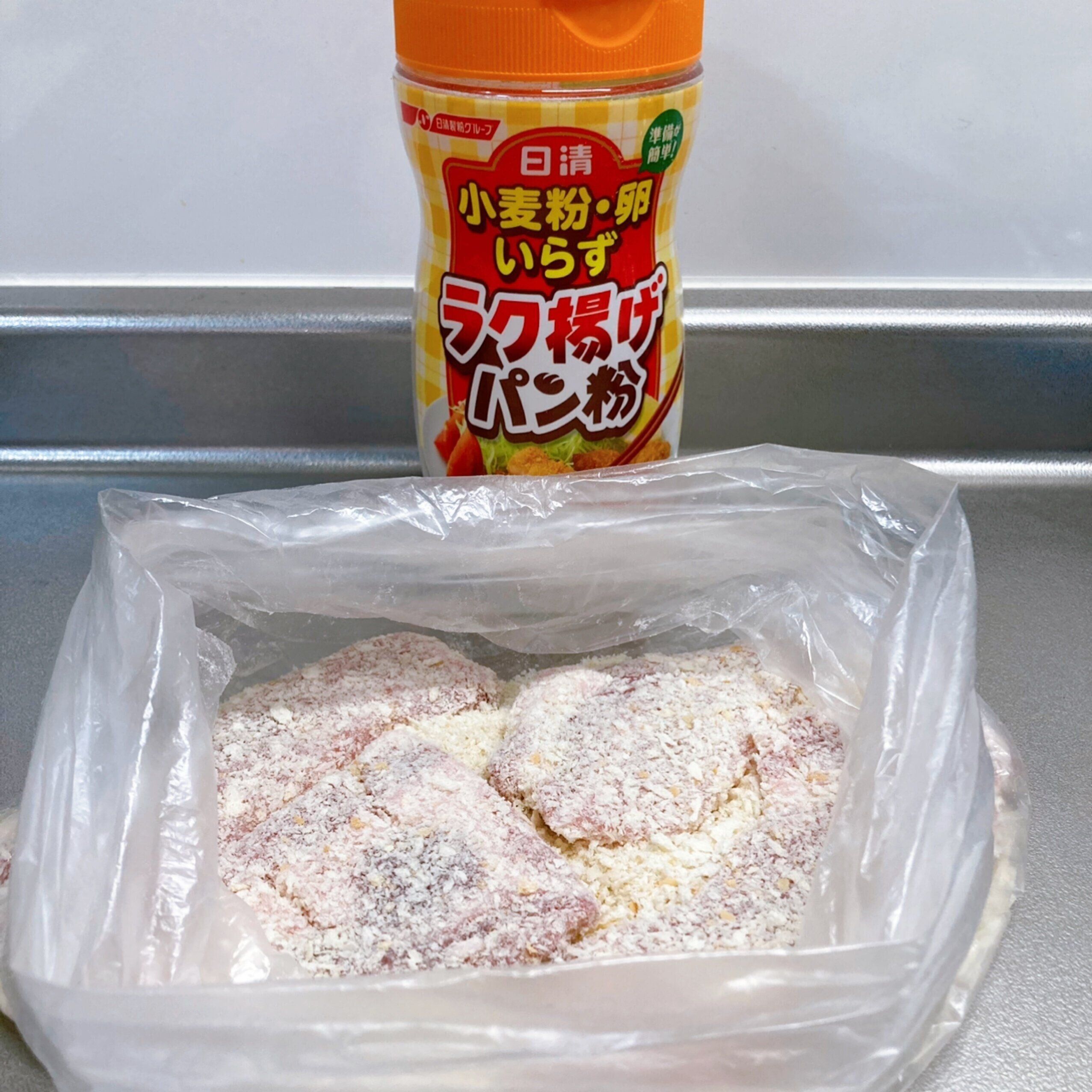 とんかつの場合、豚肉を食べやすい大きさに切って、塩コショウして、衣をつけておけば、朝は揚げるだけ!