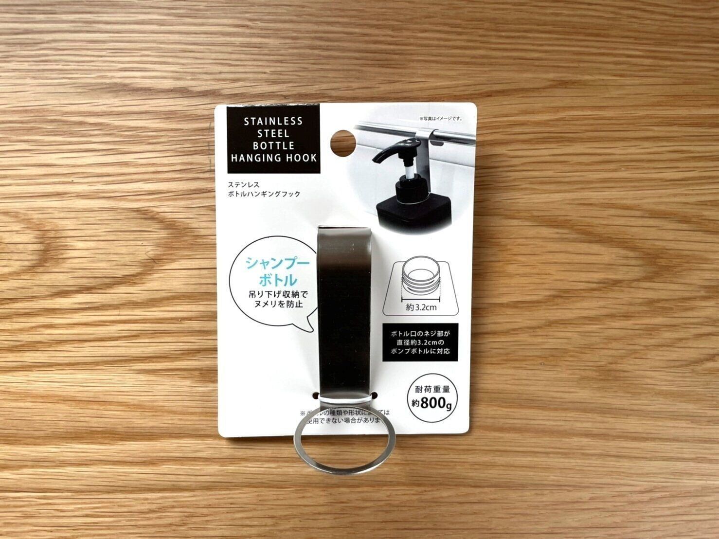 湿気が多い浴室は「吊るす収納」が断然おすすめです。吊るす収納でご紹介したい収納グッズがセリアの「ステンレスボトルハンギングフック」(110円)です。