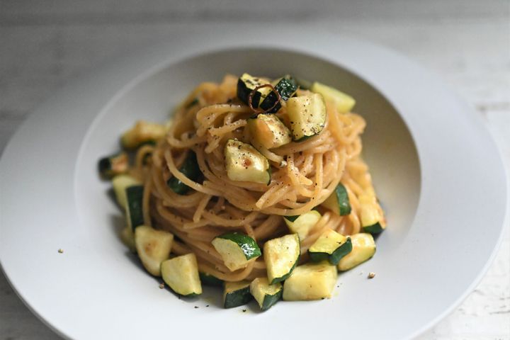 シンプルな料理ですが焼き色をつけたズッキーニとにんにく・鷹の爪のパンチが効いた味が合わさり、あっという間に食べ切ってしまうひと皿に仕上がりますよ。