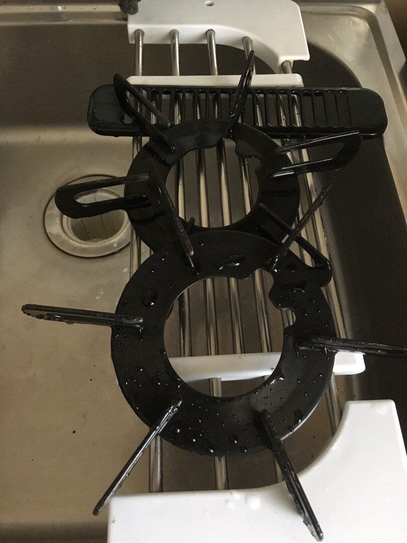 焦げと油がこびりついたこんなトースタートレーも、セスキ炭酸ソーダ水を入れて加熱するだけで簡単キレイに!加熱に関しは、安全と品質表示などを考慮して行いましょう。