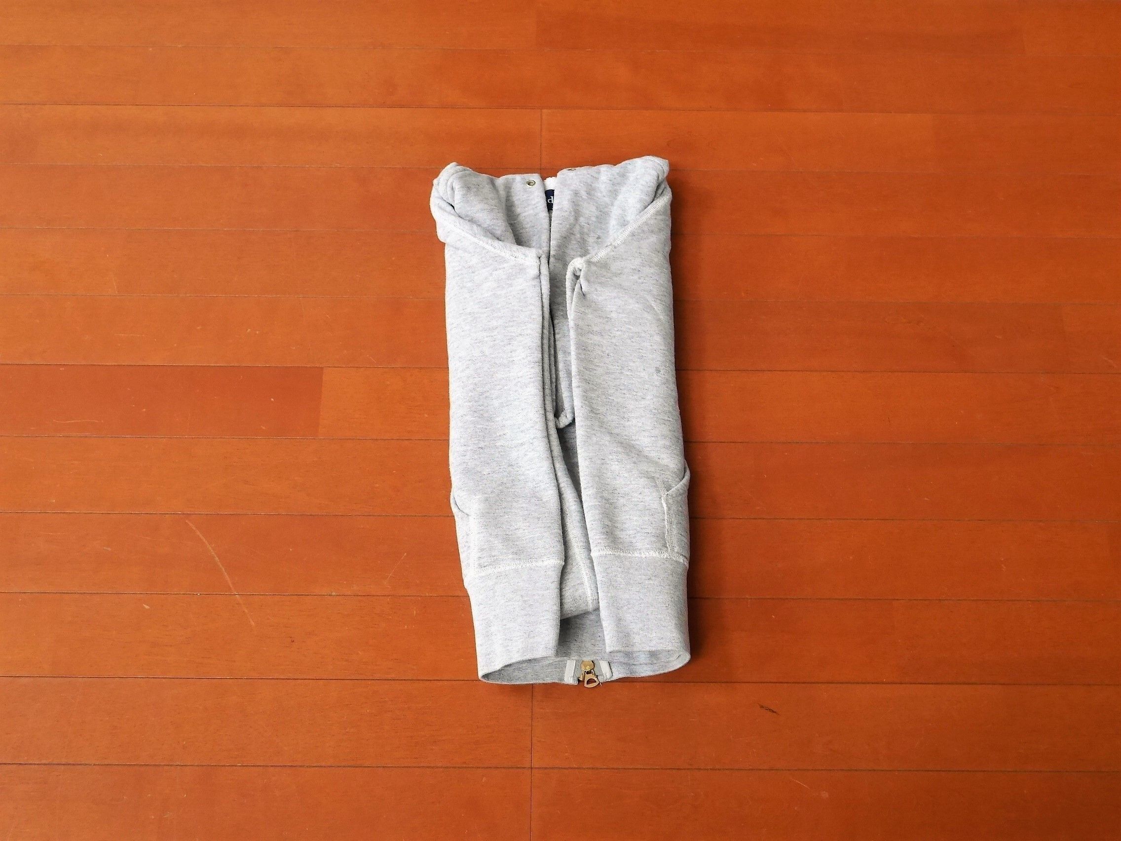 フードがあるため、どうしてもかさばりがちなパーカー。でも、たたみ方を工夫すればスッキリと収納しやすいサイズにまとめられます。