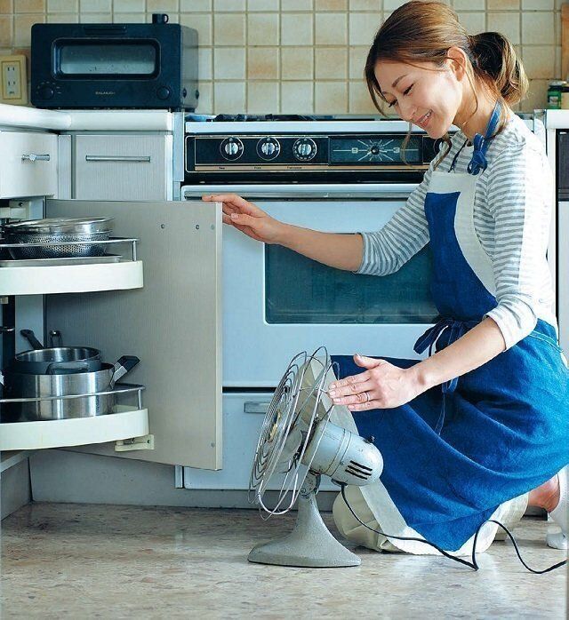 排水パイプが通るシンク下の収納は、湿気がこもりやすく、カビやイヤな臭いが発生しがち。月に数回は収納扉を開け、サーキュレーターなどで風を送って換気&除湿をしましょう。