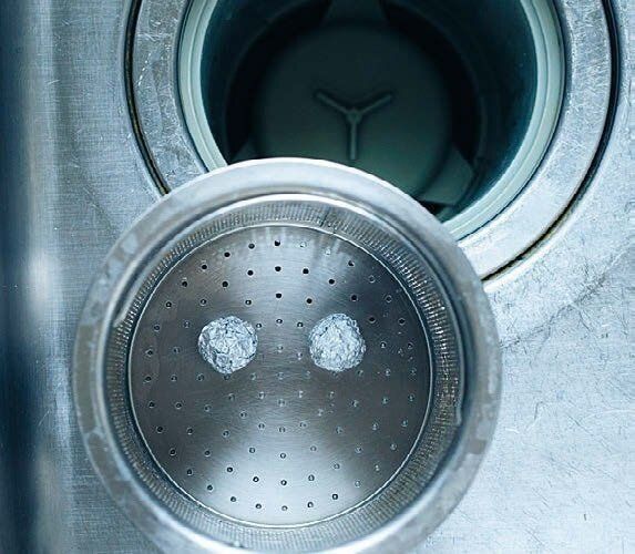 排水口のイヤな臭いには、邪魔にならない大きさに丸めたアルミホイルのボールを2個入れておくのも手。アルミホイルから金属イオンが発生し、臭い菌の増殖を抑える効果があります。