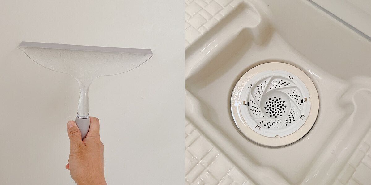 お風呂から出るときに、スクイージーで壁の水気を切ります。