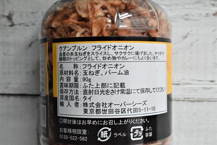 通常スーパーで売られているフライドオニオンよりも、添加物が少なめ、というのもうれしいところです。