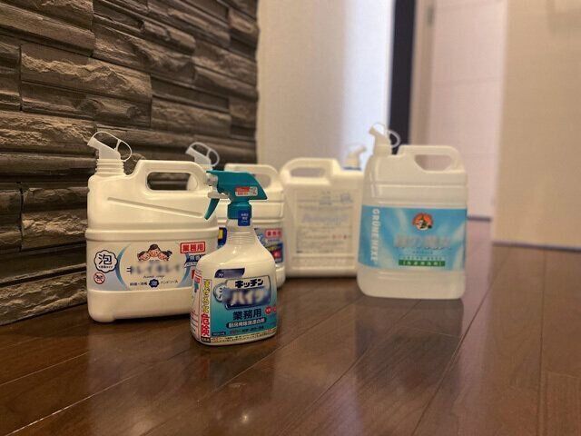 わが家では、ハンドソープ、バス用洗剤、衣類用洗濯洗剤、アルコール、ハイターを購入しています。