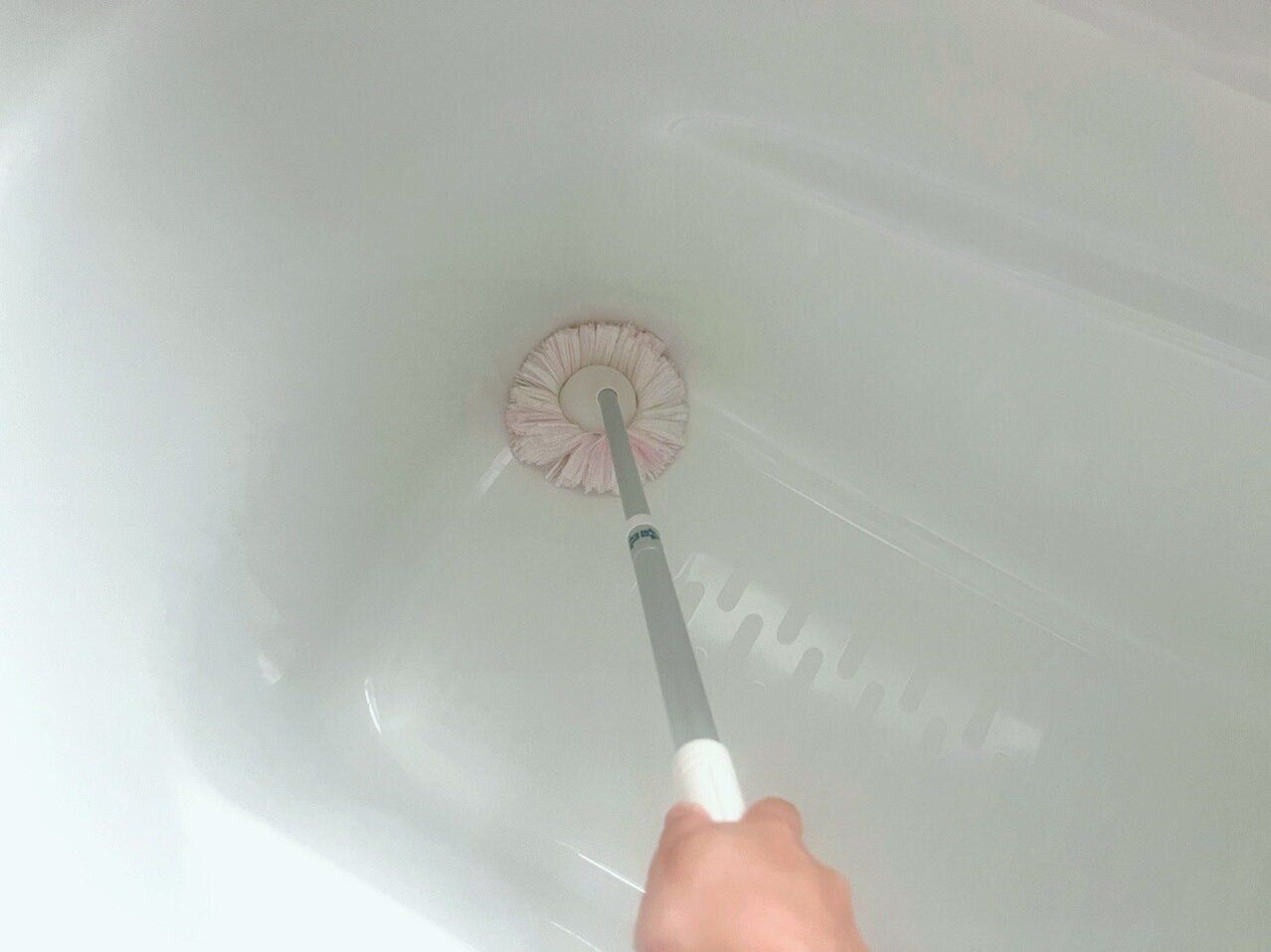 持ち手が伸びるので、浴槽に入って洗わなくてもOK。片手でササっと1分ほど。