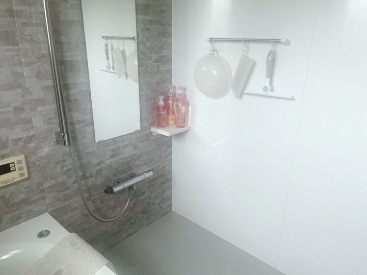 アパートやマンション暮らしを経て、今の家を建てましたが、カビが生えやすい設備や掃除がしにくい箇所は、極力無くしたお風呂にしています。壁付けの物入れラックや蛇口下の浴室カウンターもありません。